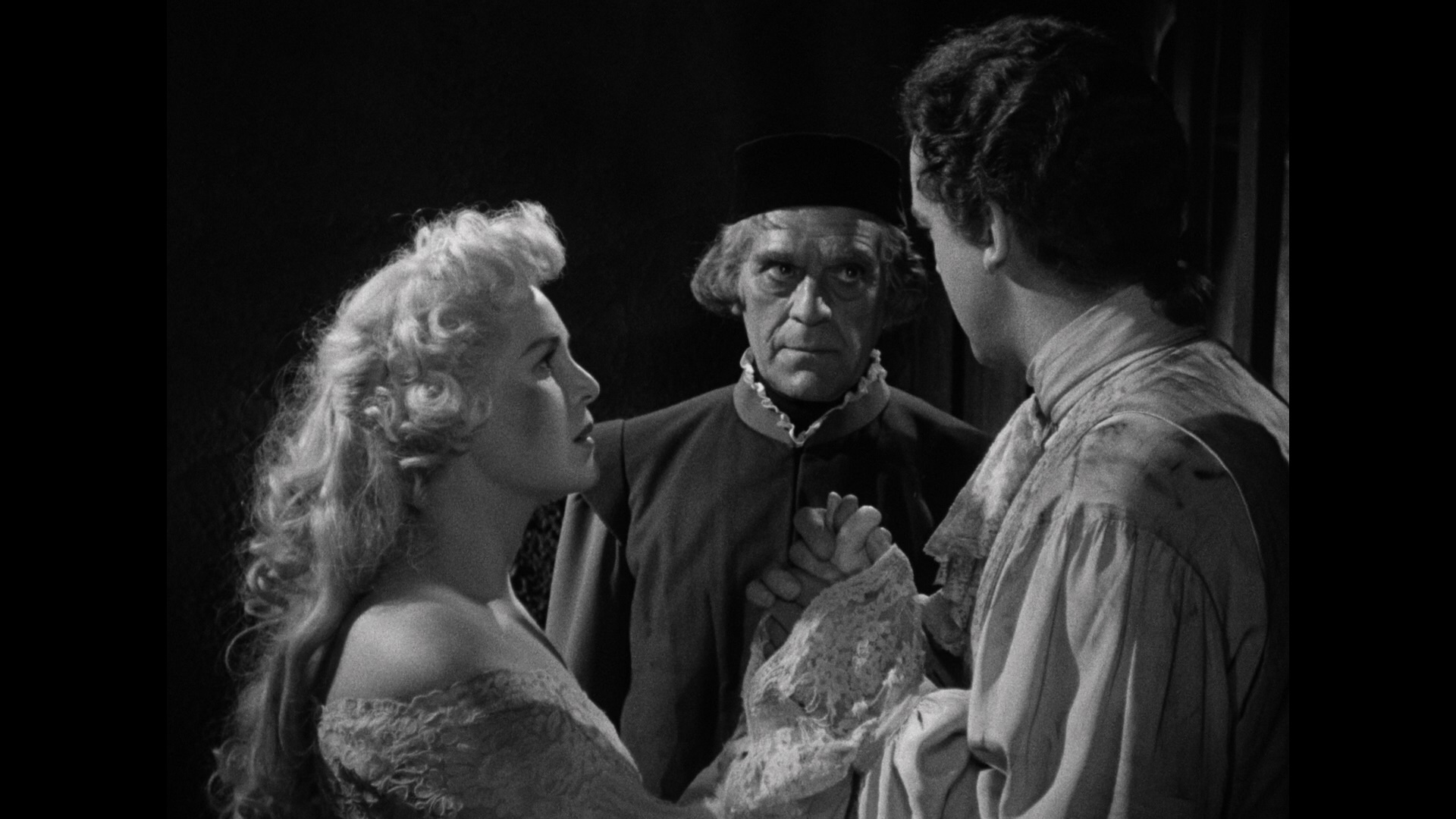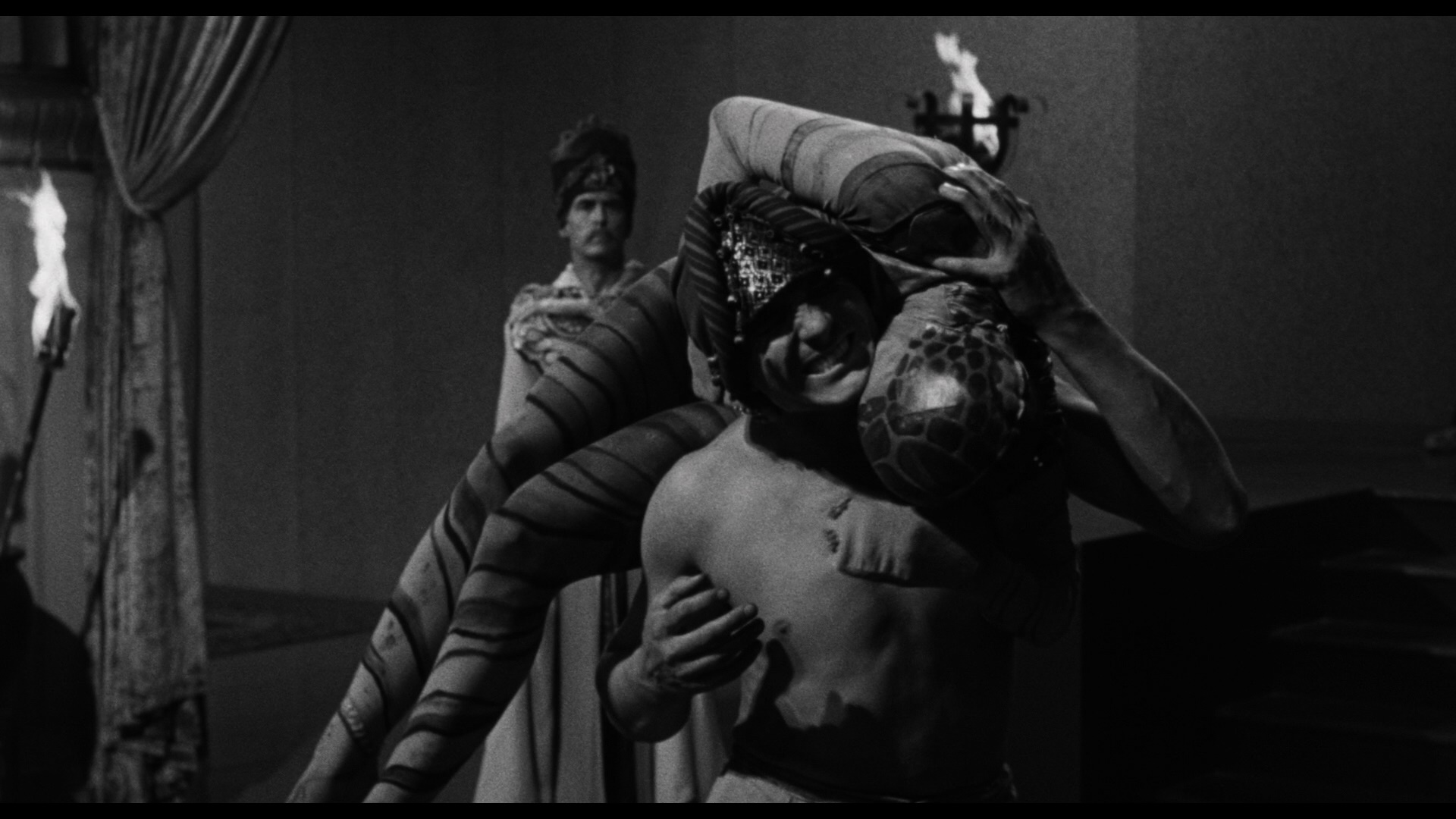 Readily available since its VHS bow in 1995 from Universal, The Black Castle hit DVD a couple of times, in 2006 as part of a five-film Boris Karloff Collection (along with Tower of London, The Climax, The Strange Door, and Night Key) and then again in 2014 as a standalone DVD-R from the Universal Vault Series. Like the other films in this set, this one is listed as a "new 2K scan from a fine grain element" and looks quite solid with a nicely detailed look on par with the stronger past entries that received new scans in the series. The DTS-HD MA mono track is also in fine shape and features optional English subtitles, as do the other films. Tom Weaver provides another sturdy audio commentary here covering the vast amount of recycling here (both music cues and production design), the coattails of The Strange Door it was riding, the ins and outs of sword fighting without a stunt double, and highlights from three interviews he conducted connected to the film. On the video side, "Universal Horror Strikes Back!" (13m49s) is a discussion with Kim Newman and Stephen Jones (with reverb-heavy sound) about the "all bets are off" state of the studio's horror output after its golden age including a move to contemporary settings, curious detours like the jungle films and Inner Sanctum series, and genre mash ups working in elements like crime films. An image gallery (2m27s) is also included.