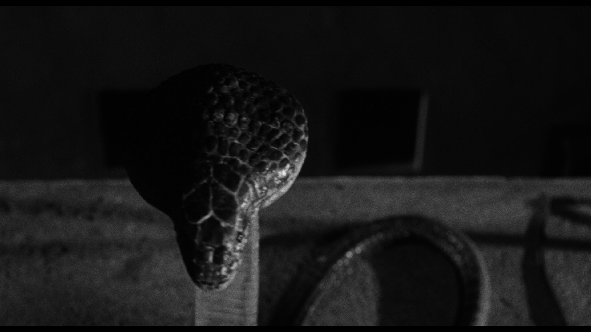 A mainstay on TV and occasional revival screenings, Cult of the Cobra also hit VHS in the mid-'90s and ended up in a Universal DVD collection later in 2007, in this case The Classic Sci-Fi Ultimate Collection Volume 2 (packaged with Dr. Cyclops, The Land Unknown, The Deadly Mantis, and The Leech Woman), plus the usual DVD-R solo reissue. It looks great here (apart from what appears to be some dodgy film stock in a few shots) and makes for fine, atmospheric viewing all the way. You get another new Weaver commentary track here, and it's packed with fun info about the film including notes about its cast (including more Twilight Zone connections) as well as a great early observation about some casting and editorial chicanery involving the cult's high priest. You also get some commentary cameos scattered through from Steve Kronenberg, David Schecter, and Dr. Robert J. Kiss. Also included are the theatrical trailer and a 1m24s reel of TV spots for its Creature double bill, plus a still gallery (2m40s) featuring some great staged shots of the cast being menaced by various fake snakes.