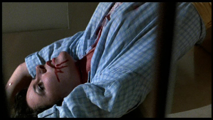 In 2015, U.K. label 88 Films added the film to its early roster of Blu-ray Italian horror releases alongside such titles as Anthropophagus and The Night Train Murders. The 16mm origins are still in evidence here but overall it's satisfying on the more modest end of the scale, vaulting way past the DVD in terms of clarity and preserving the more vertically spacious 1.66:1 aspect ratio compared to the slightly windowboxed 1.78: 1 version on the DVD. The extra room on the top and bottom helps quite a bit, restoring balance to compositions that previously bordered on the claustrophobic. Interestingly, it also sports a completely different opening credits sequence featuring a freeze frame of the bloody tennis ball instead of the black background in past transfers. (This tennis ball opening is also seen in the Italian version.) This discrepancy may also account for the fact that this runs a minute shorter than the American DVD, as it otherwise appears to contain the added material from the Italian extended version. However, in addition to a more robust LPCM rendering of the English dub track, the biggest plus here is the inclusion (at last) of the original Italian audio with English subtitles which can be switched on or off via which option you choose from the menu. The actors were all speaking Italian for the production, and the translation here is far more natural and classy with all of that illogical, wince-inducing dialogue making quite a bit more sense. (For example, the awkward "Female, you're a female" at the beginning is now "Little girl.")