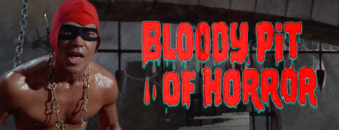 stunned drive-in patrons in the '60s under the title Bloody Pit of Horror, promoted as a derivation of the writings of the Marquis De Sade. Whatever literary basis this film may have had goes flying out the window in the first scene, which finds a busload of models, writer Rick (The Playgirls and the Vampire's Brandi), and photographer Dermott (producer Zucker) crashing a remote, abandoned castle for a glossy horror novel photo shoot. However, the castle isn't completely empty; an unstable former Hollywood actor named Travis Anderson (Hargitay, husband of the late Jayne Mansfield) reluctantly allows them to stay as long as they don't go into his massive underground dungeon. Driven over the edge by the presence of his former sweetheart among the models, Travis assumes the persona of the Crimson Executioner, a puritanical torturer from the 17th Century and psychopathic male physique model. He then proceeds to subject the infiltrators to a variety of tortures ranging from the rack to his ingenious "spiderweb," and not everyone will make it out alive.