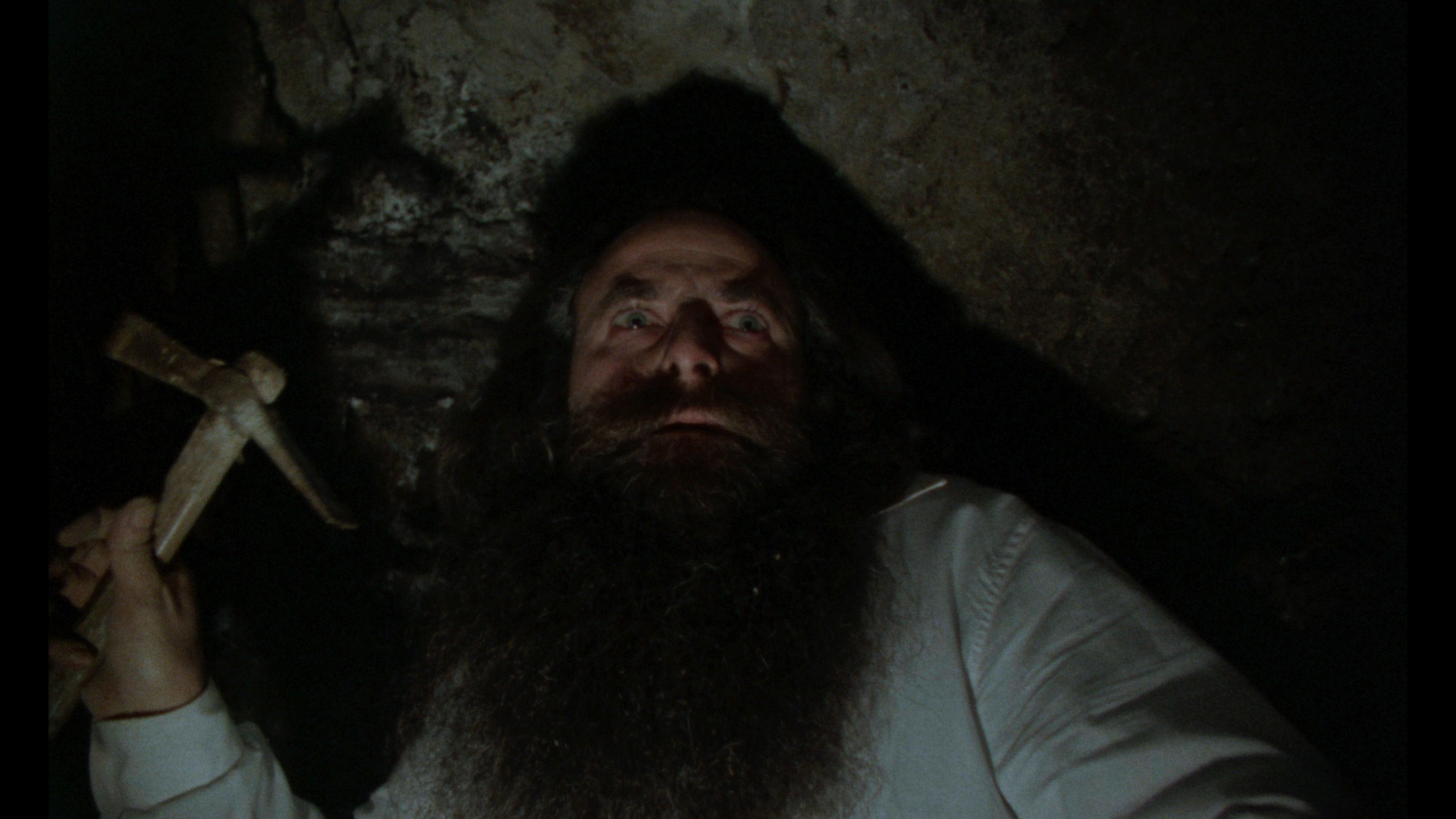 In the summer of 2023, 88 Films gave the film its first upgrade to UHD as a dual-format edition in the U.K. with a remastered Blu-ray as well. The 4K scan from the best surviving element (cited as a 35mm blow-up interpositive) is, it's safe to say, as good as this film could look with the HDR10-compatible Dolby Vision grading on the UHD really bringing out flesh tones and bloody shades of red far more than earlier releases. Detail is satisfying throughout, given how the film was shot, and the DTS-HD MA 2.0 English and Italian tracks still sound very good with the usual translated and SDH English subtitle options. The Waddell and Martin commentary is ported over on both formats, plus a new commentary by Eugenio Ercolani, Troy Howarth, and this writer that can't be evaluated here, obviously. The Blu-ray ports over the deleted scenes, trailer, grindhouse version, Italian credits, and the Coven interview, but you get some new goodies as well starting with the astounding "Return to the Burial Ground" (13m51s) with Bark paying a visit to Villa Parisi for a discussion about how he got cast in the film and what it was like kicking off his career with this singular cult classic by the "reserved" but very helpful Bianchi.