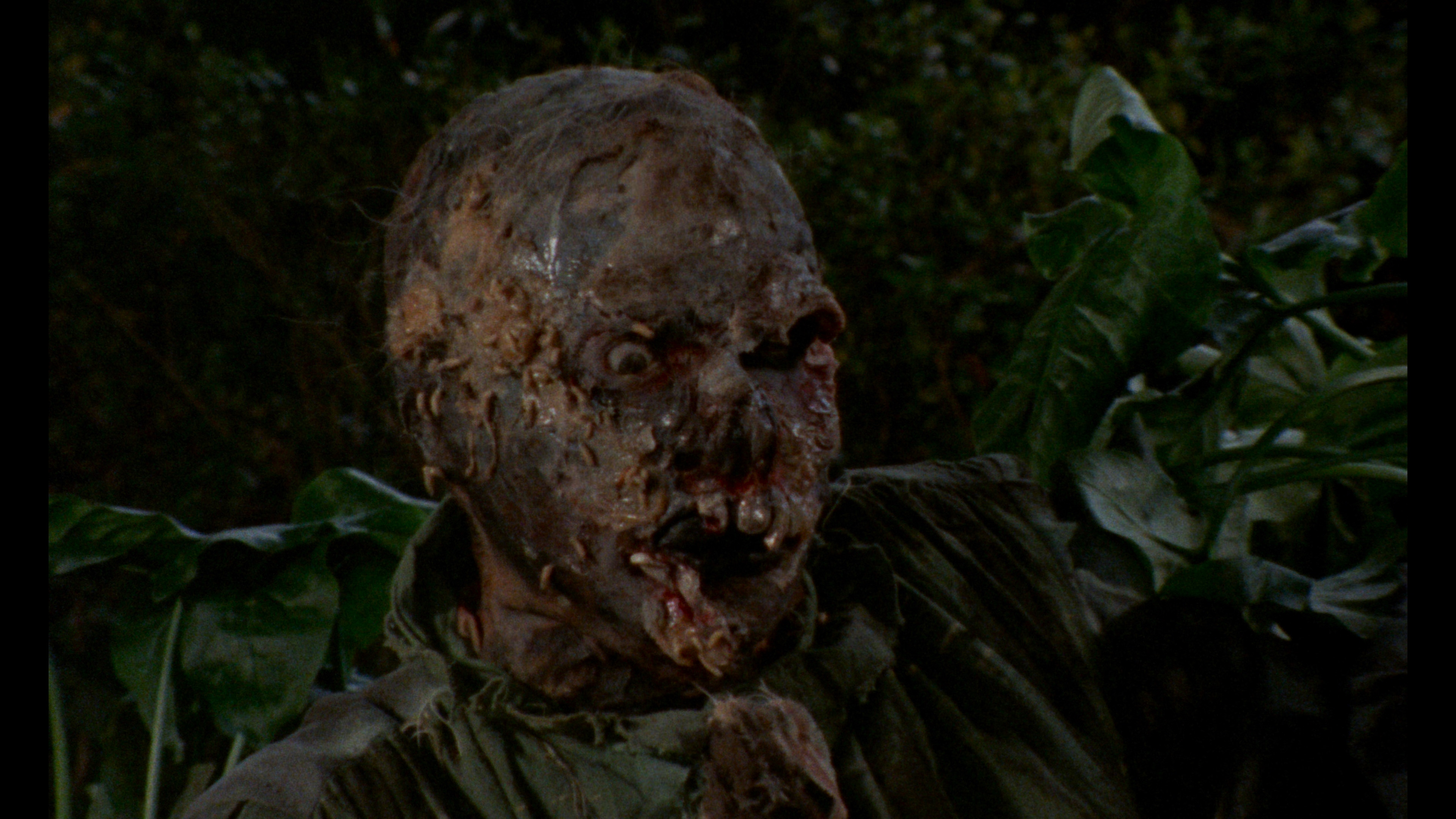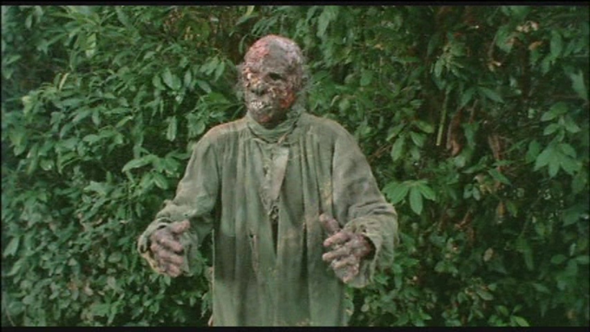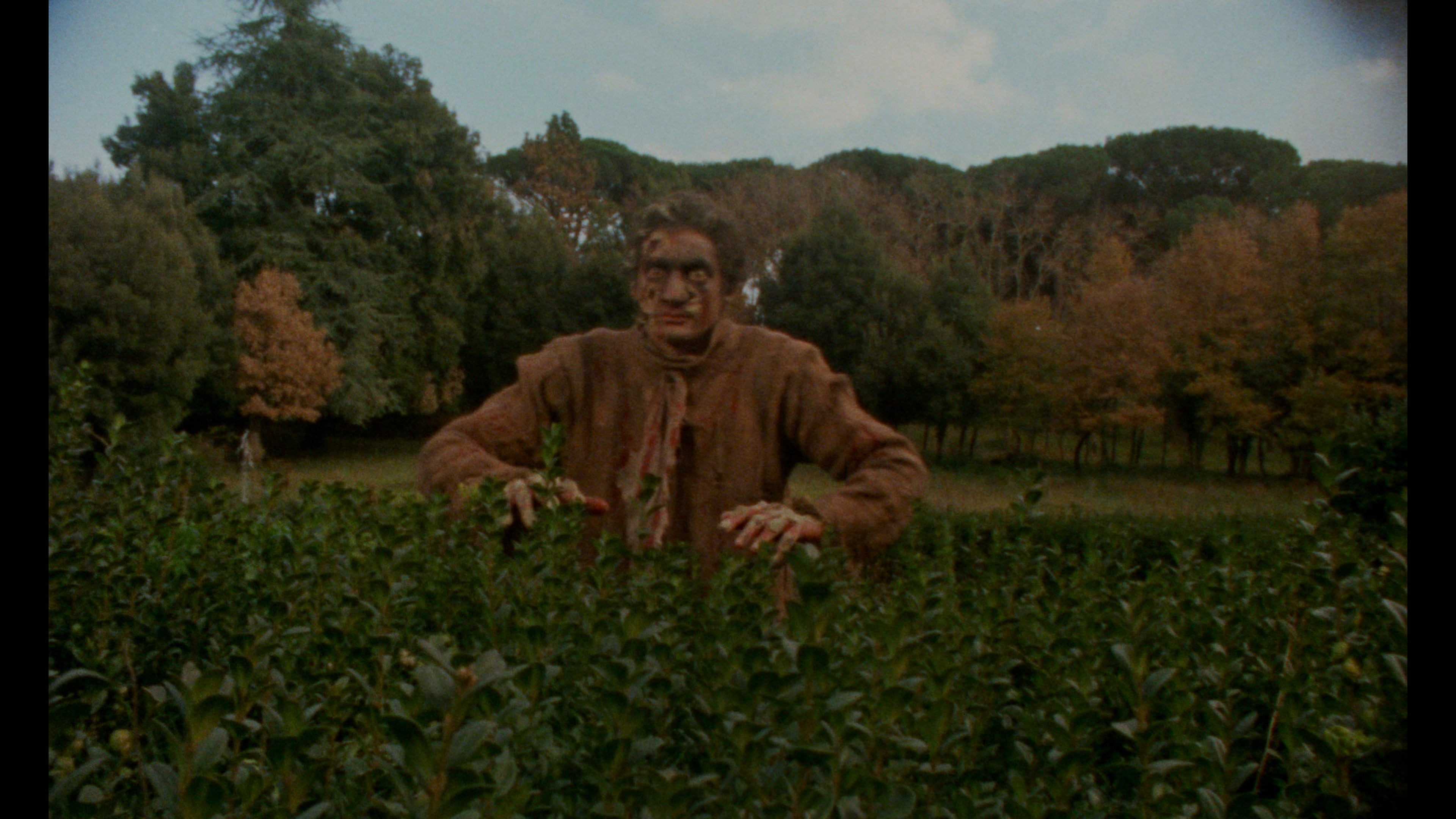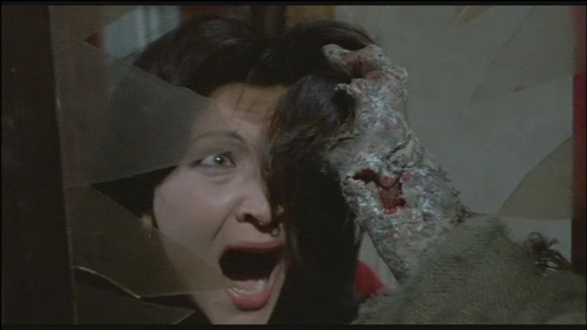 you could possibly want from a 1981 Italian film. Nudity, creepy electronic music (with some disorienting jazz thrown in for good measure), borderline incest, a wide variety of crafty zombies, the world's slowest scythe beheading, maggots, worms, and a nihilistic ending (with a great typo to boot) have made this one lodge in viewers' memories ever since its unrated theatrical run in the U.S. from FCG. '80s horror fanzines boosted the film's reputation through the roof with young gorehounds scrambling to find the Vestron VHS release, which was notoriously murky (several night shots turned into complete mud) but still earned many fans. A sought-after Japanese laserdisc was quite a bit brighter and more watchable, but few could actually get their hands on it.