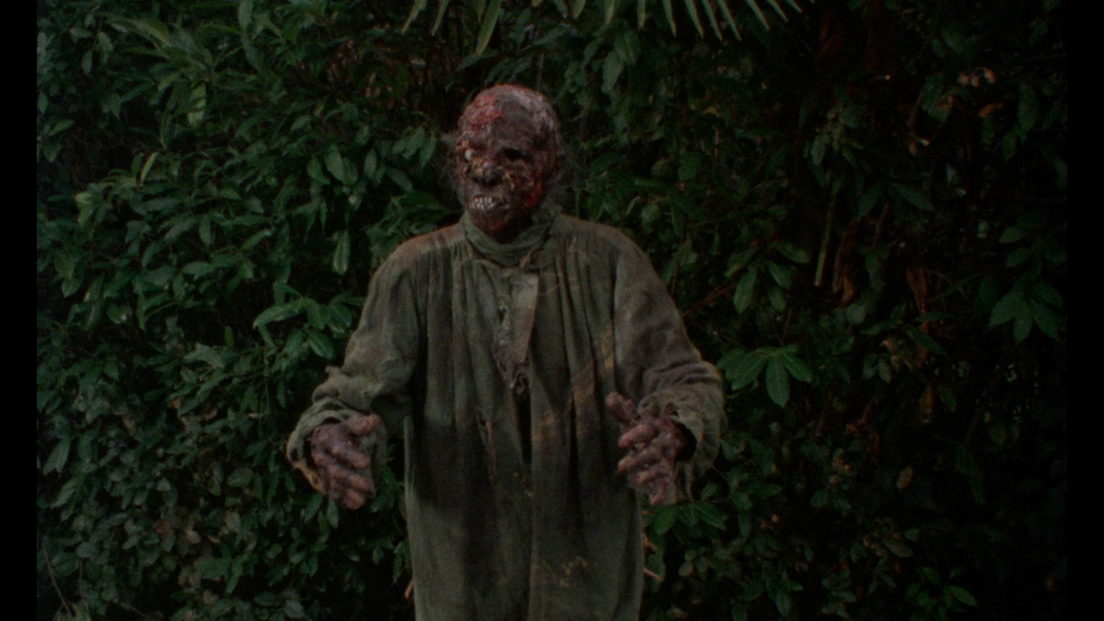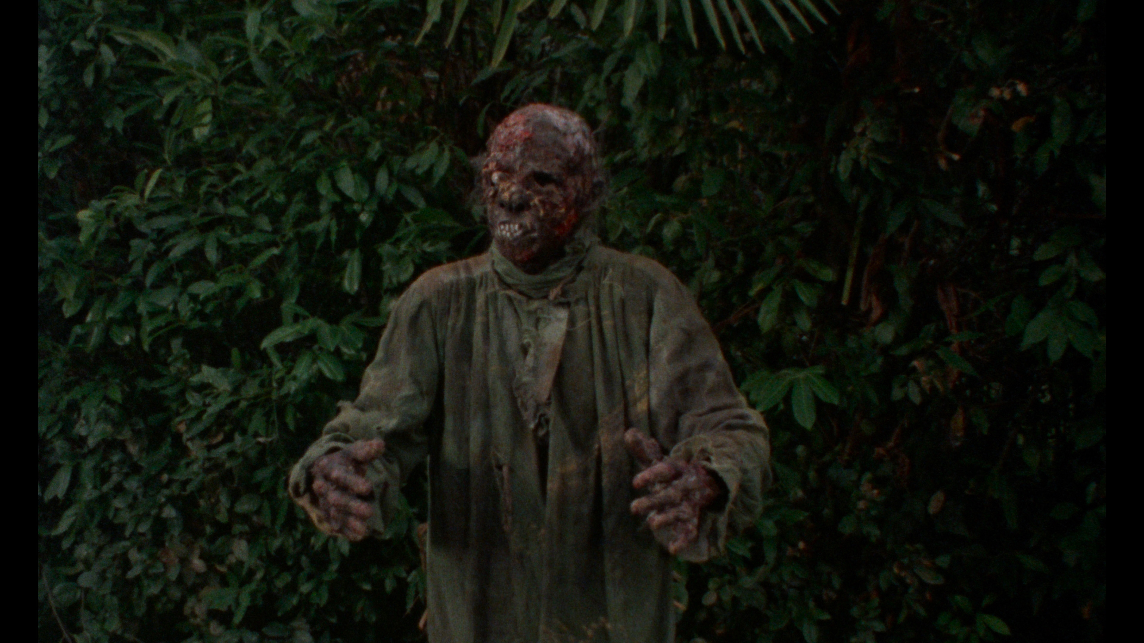 In 2024, Severin Films gave Burial Ground its inevitable upgrade to UHD / Blu-ray in the U.S., taken from the same excellent 4K master and looking the same throughout (which is good news, Dolby Vision and all). Again it has the usual English/Italian audio options and dual subtitles, plus both of the audio commentaries (Ercolani/Howarth/Thompson and Waddell/Martin) and the trailer on both the UHD and Blu-ray. The latter features the "Villa Parisi," "Peter Still Lives," "The Smell of Death" and "Just for the Money" featurettes from the earlier Severin Blu-ray and the deleted scenes, plus the premiere U.S. appearance of the "Return to the Burial Ground" featurette. Die-hard fans can also load up on a sticker you'll never use around the rest of the family, a t-shirt, or for true believers, a "Death Smells Bundle" featuring the world's greatest pillowcase.