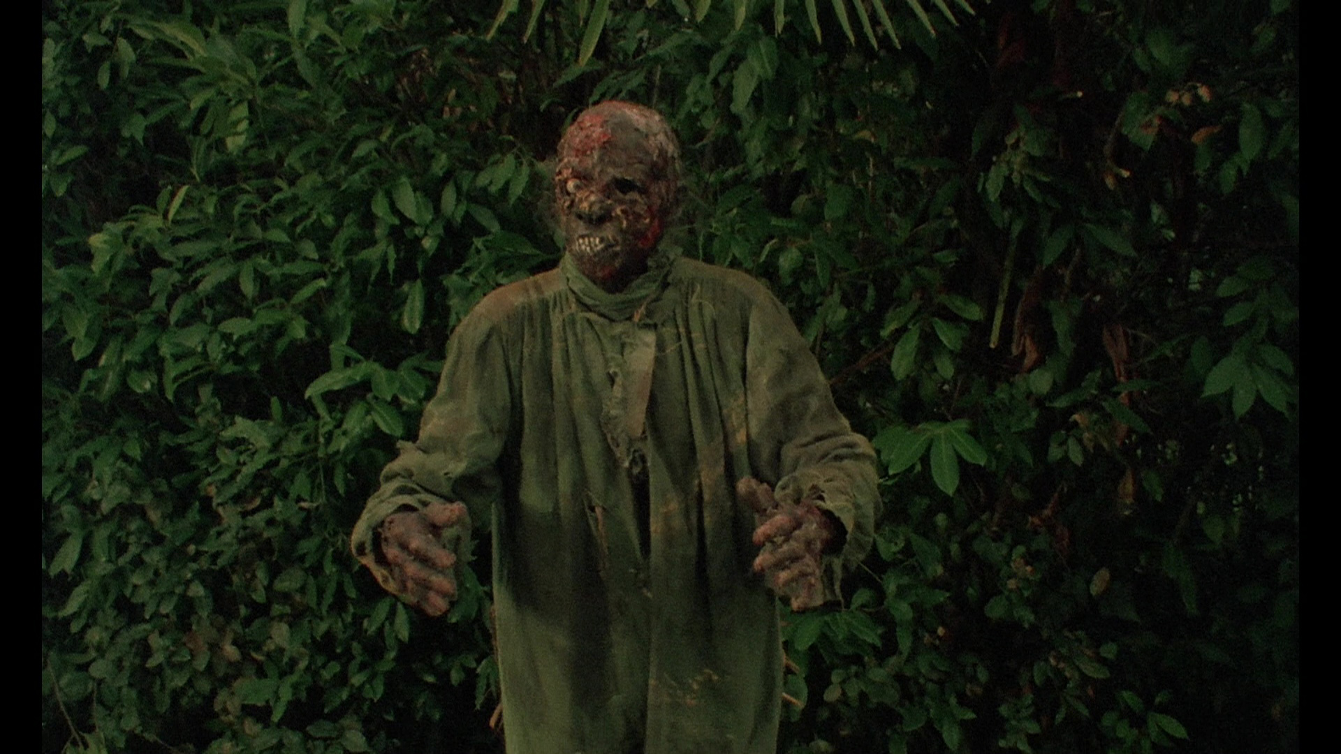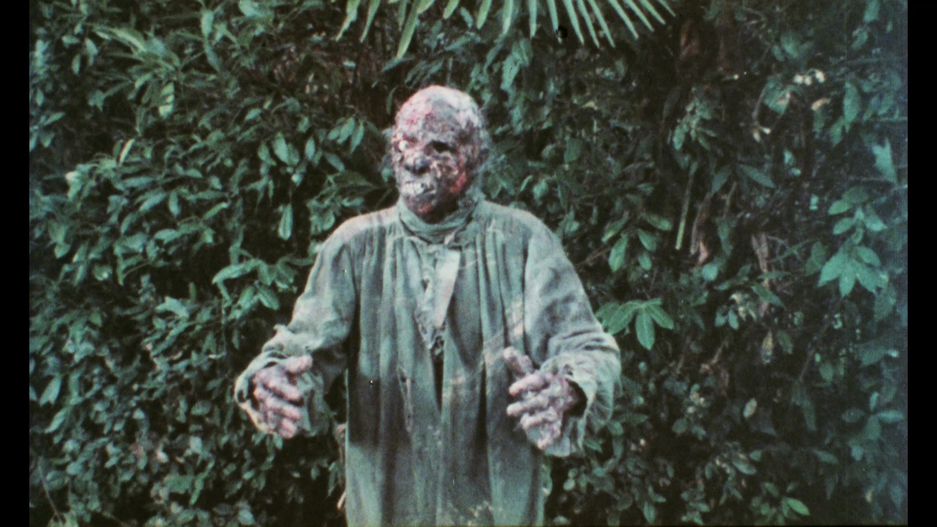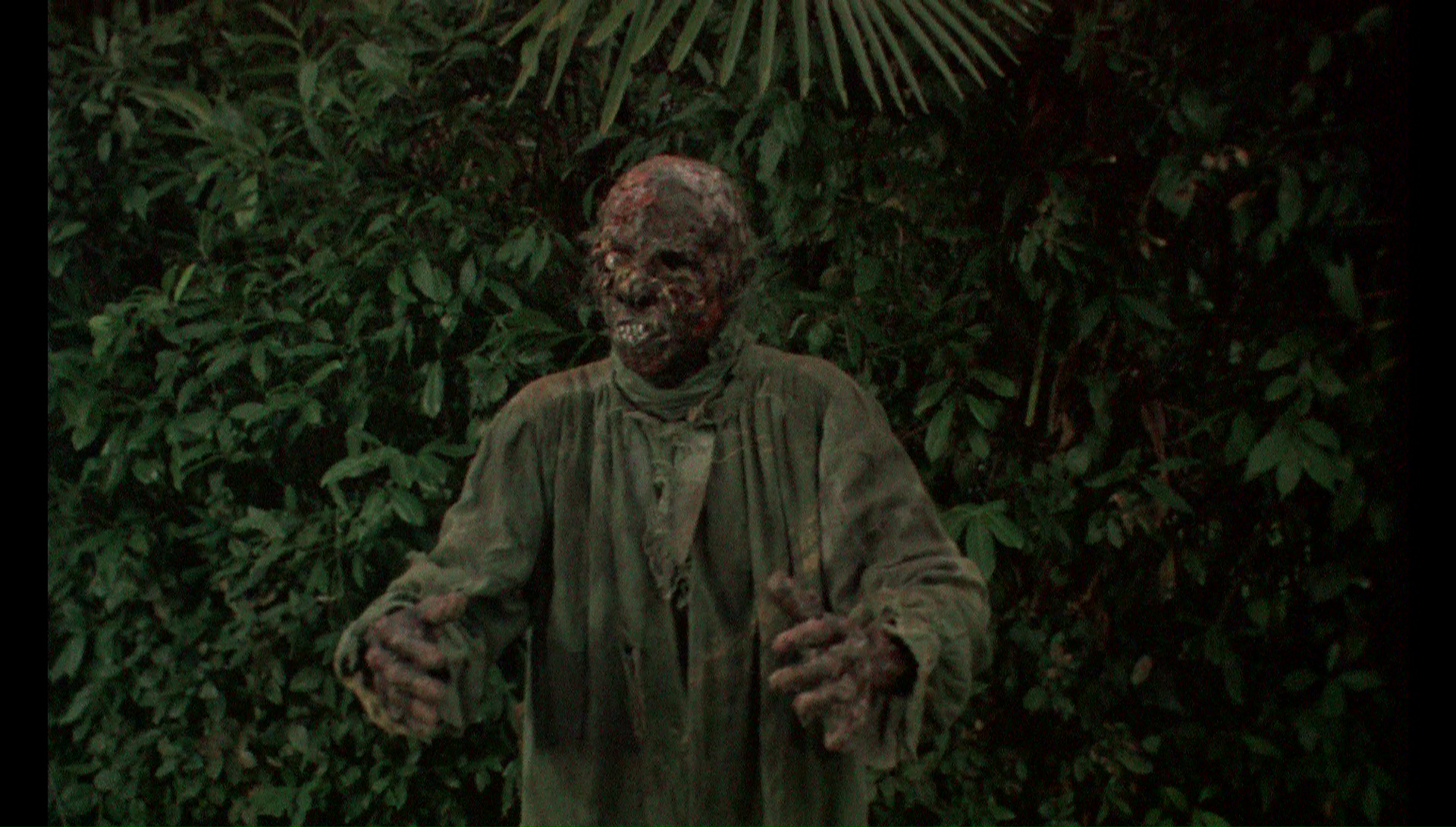 which is a bit classier and not even remotely as amusing; it's a very different viewing experience. (Unlike some other 88 Films titles, you can switch audio and subtitle options on the fly during playback.) An audio commentary with John Martin and Calum Waddell covers the wave of Italian zombie films from the late '70s through the '80s and goes into detail about the film's history with the BBFC and the ins and outs of VHS horror at the time. There isn't a ton of production detail here but they're certainly appreciative of Bianchi's directorial flourishes. One nice video bonus here is a "35mm grindhouse version" option, an HD transfer of one of the few circulating theatrical prints complete with heavy grain, flickering, and scratches, not to mention the American opening and closing titles. It's not pretty, of course, but it actually makes the film feel a lot more dirty and creepy throughout and admirably recaptures the feeling of seeing this in a theater if you've ever caught one of the film's (surprisingly frequent) repertory screenings. Also included are the trailer, the outtakes reel, a bonus trailer for Zombie Holocaust, and a 26m40s interview with author Mikel Coven, who puts Bianchi's career and particularly his zombie opus in context with the demands of Italian commercial cinema at the time. It's probably the most academic dissection of his work you'll ever hear.