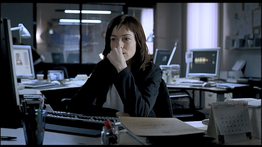 That brings us to 2020 with the much-needed U.S. Blu-ray edition from Scorpion Releasing, which comes in a limited slipcover edition. Thankfully this sports a fresh HD scan with new, better color timing that brings out a depth and range to many scenes that was lost in past transfers; it's also the only version out there that's HD all the way from start to finish, and it features the English-language titles and computer sequences. The English and Italian tracks are present in DTS-HD MA 5.1 configurations (both sound excellent) with optional English subtitles translated from the Italian. A new audio commentary features yours truly and Troy Howarth, which can't be reviewed here for obvious reasons, but hopefully you'll find it worth a listen. In the new featurette "Watch Me When I Kill" (17m44s), Argento chats about his research into police life to prep for the film, the filming around Rome's suburbs, an aborted plan to film in Venice, the original casting of Asia Argento that fell through when she went to America, the filming of Cunningham's drunk scene, the visual influence of Lars von Trier and the Dogme 95 movement (with very minimal use of artificial lighting), and his enjoyment of working with Rocca. The interview also incorporates quite a bit of the behind the scenes footage, though those pieces aren't here in their original form; it's also safe to say that this is the only Argento interview that incorporates a poster for Spring Breakers. In "Taking Risks" (8m45s), regular Argento screenwriter Franco Ferrini talks about the genesis of the story with a real-life crime involving a gambling serial killer (which was also made as a TV movie by Michele Soavi), his study of risk taking with a psychiatrist, the original Venetian location, the reason one actress ended up being cut from the film, and some other options he explored for the killer's identity that remain in the finished product. "A Chip and a Chair" (11m59s) with set designer Antonello Geleng also touches on the Venice angle, the various directors of photography Argento used over the years, and the rewarding challenges of pulling off the cat and mouse scene in Anna's The Card Playerapartment. Finally, "Game Over" (8m31s) catches up with Fiore Argento (who reunited The Card Playerwith her father on this film after getting killed off years earlier in Phenomena and Demons), including her thoughts on the visual perception of her character as an "element of light" and the strange circumstances of being tied up and gagged in a dentist's chair, as well as a helpful gesture Cunningham performed for her during a key scene.