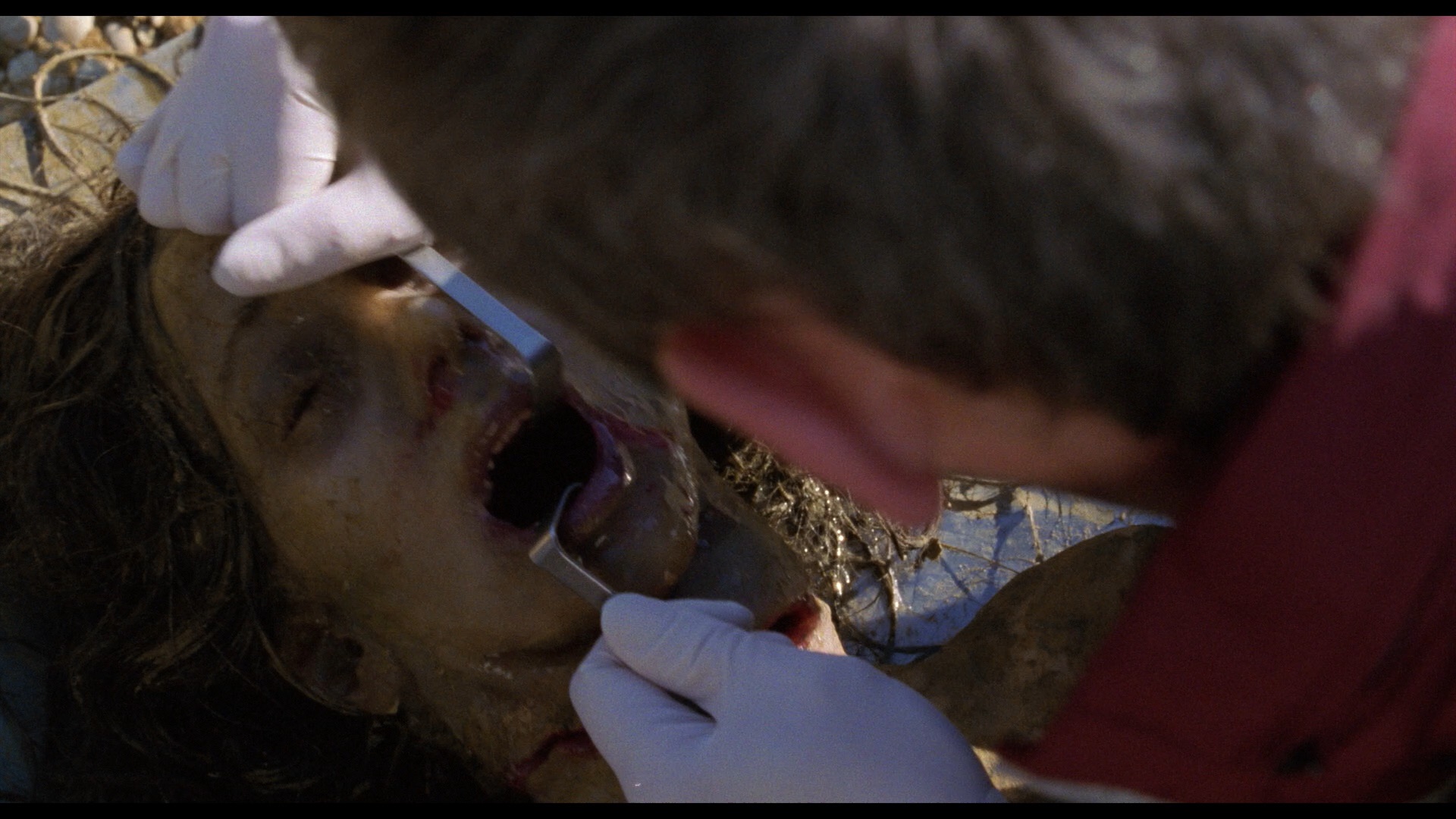 Five years later in 2025, Vinegar Syndrome issued the film as a UHD and Blu-ray set featuring a new 4K scan from the 35mm original camera negative (with English credits and on-screen computer sequences). The HDR-compatible Dolby Vision grading on the UHD is the most robust presentation so far with punchier colors, but the Blu-ray is no slouch either; this is the healthiest the film has looked with additional image info as well. The original English track is presented in DTS-HD 5.1 here (sounding excellent) as well as the Italian 5.1 dub with English-translated or SDH optional subtitles. The commentary is ported over here along with the Dario Argento, Ferrini, Geleng, and Fiore Argento interviews and the making-of featurette (speed corrected to 9m18s). You also get four new interview featurettes starting with "Playing the Game" (26m44s) with Rocca, who looks completely different here, looking back at being "freaked out" by Argento movies in her youth, her immediate positive reaction to meeting him, the inner nature of her character, an allergy-related bit of method acting, and their continued friendship after the film. In "Digital Nightmare" (19m10s), Simonetti goes into the inspiration he took from the premise of the film, his collaborative music listening with Rocca, the creation of the soundtrack after coming up with demos, the influence of Isao Tomita and Wendy Carlos, and his satisfaction with the end result to this day even if it still divides some fans. Then Sergio Stivaletti appears in "Like in War (10m4s) covering the make-up effects including the influence of the cold atmosphere, the concoction of the dead body for the autopsy scene, the execution of the memorable garden sequence, and how the cinematography interacted with his work. Finally in "Sharp Cuts" (20m4s), editor Walter Fasano chats about his admiration of Argento, the impact of censorship on his films, his own cameo in this one, the arduous work hammering the film into shape after the first cut, the cop chatter material deleted along the way, and the precision of cutting the poker sequences so each one felt different.