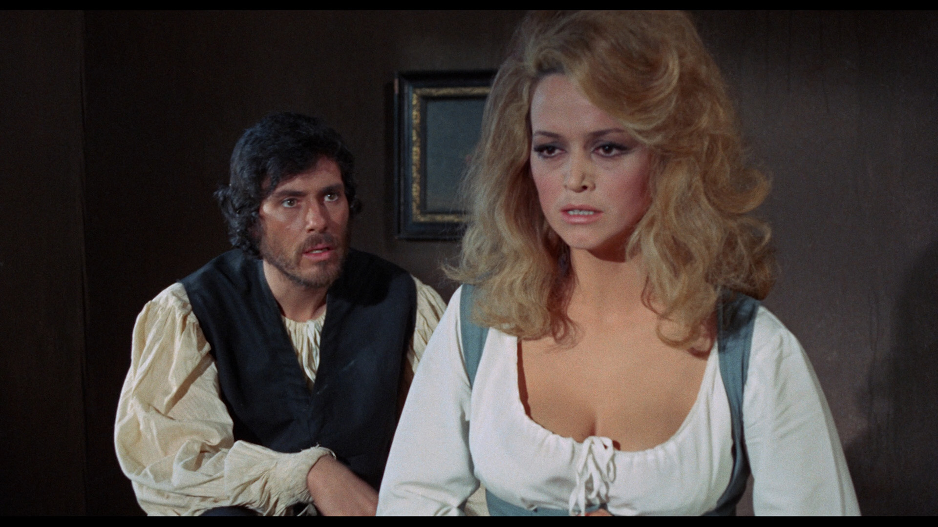 restoration from the camera negative that makes this far more pleasant to sit through than the terrible prior versions; the colors and detail here are remarkable with some reds and greens that will make you gasp. The DTS-HD MA 2.0 Italian track is also perfect and features optional English subtitles. (Apparently an English dub was never prepared, and this was barely exported anywhere at the time.) This is also the slightly longer version never seen before on home video, restoring a little bit of extra nudity and writhing during the orgy scene. A new audio commentary by Annie Rose Malamet works up a lot of enthusiasm for this film with comments about Neri's star presence, the subversive aspects of female sexuality in genre cinema, the red color coding in the costumes, and those unmistakable Rollin-esque touches, among other topics. The video essay "Lady Of The Night: The Feminism Of Rosalba Neri" (16m44s) by Alexandra Heller-Nicholas features pretty much every shred of screen nudity Neri ever did while running through the actress' work in Slaughter Hotel, Amuck, Lady Frankenstein, The Devi's Wedding Night, and this film. Finally in "Out Of The Woods" (25m21s), Woods covers the various phases of his acting career including his work as a dubber, his theater roles, his early break in Otto Preminger's The Cardinal, and his move to Italian westerns that led to a prolific career in Euro projects like this one.CASTLE OF BLOOD: Severin (UHD)