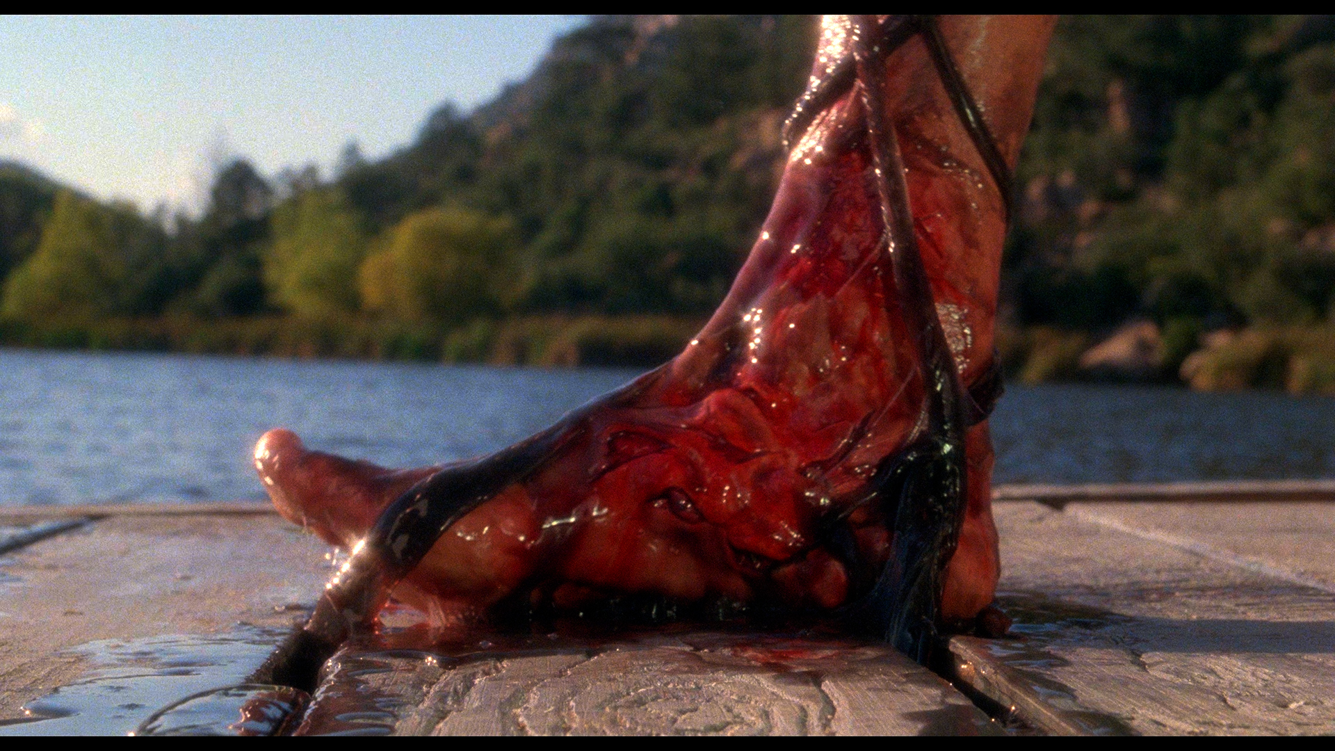 At the end of 2016, Arrow Video took its own stab at the film's first North American special edition Blu-ray release, featuring what's touted as a "brand new 2K restoration from original film elements" and several of the earlier Anchor Bay (Gornick commentary, "Nightmares on Foam Rubber" featurette, trailer) as well as both of the 88 Films featurettes with Romero and Savini and behind-the-scenes footage. In addition to two trailers (one of them including the hilarious "nothing of significance" voice over) and an expanded stills gallery, you also get the fun "The Road to Dover" (13m51s) with Wright chatting about how his ability to do stunts came in handy with this film after roles in movies like The Wanderers and how much he appreciated the deep passion of the effects team, "Poncho's Last Ride" (14m45s) with Beer (the "nicer" guy from "The Raft") offering amusing stories about his co-stars and recalling his severe hypothermia that shut down production for a few days, and "My Friend Rick" (2m44s) featuring Berger briefly talking about
