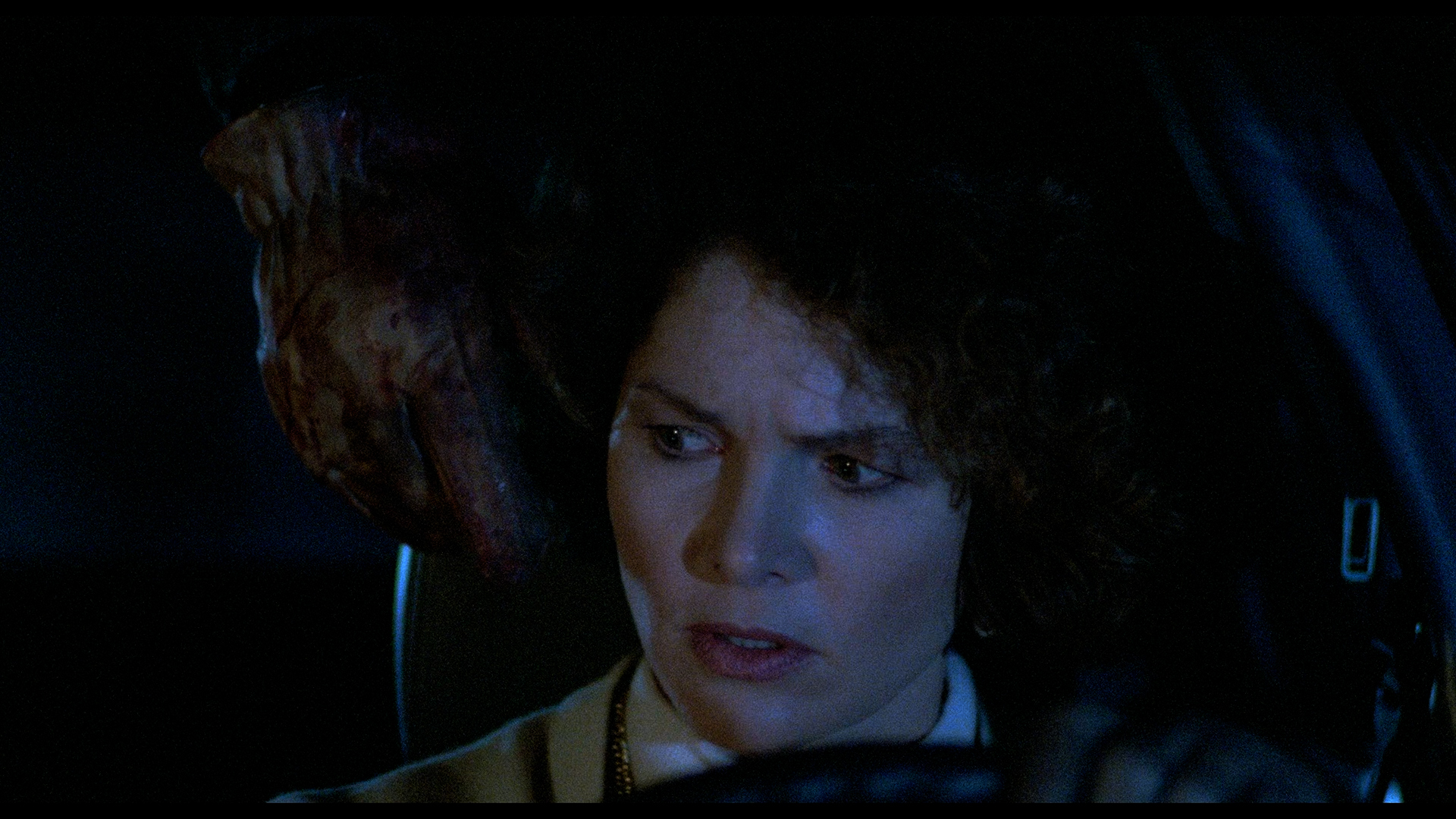 Finally, the most oft-quoted episode, "The Hitchhiker, stars Moonraker's Lois Chiles as Annie Lansing, an adulterous woman whose speedy post-coital trip back to her husband is interrupted when she accidentally runs over a road worker (Wright). She then takes off instead of calling the police, only to be continuously harassed by the decaying human roadkill, who keeps popping up and chiming, "Thanks for the ride, lady!"