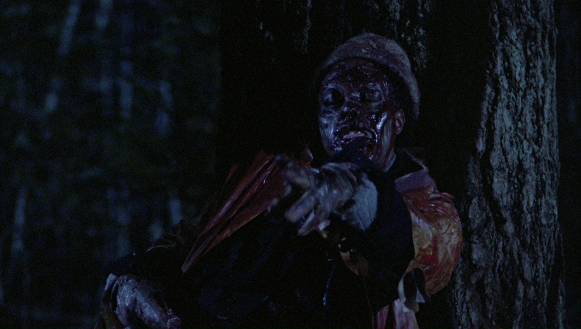 In 2004, Anchor Bay revisited the title as a Divimax (i.e., high bit-rate) release featuring the trailer, a DVD-Rom screenplay, galleries of storyboards and publicity stills, a lively commentary with Gornick and Perry Martin, and "Nightmares in Foam Rubber" (32m4s) with future makeup superstars Howard Berger and Greg Nicotero about their days as "kids" hopping between Arizona and Maine to come up with their props and monsters. (Lots of great behind-the-scenes footage, too!) As with the bulk of New World's titles, the rights eventually migrated over to Image Entertainment in 2011, resulting in a no-frills edition on Blu-ray and DVD that looked pretty drab by technical standards at the time, featuring the mono and matrixed 5.1 audio