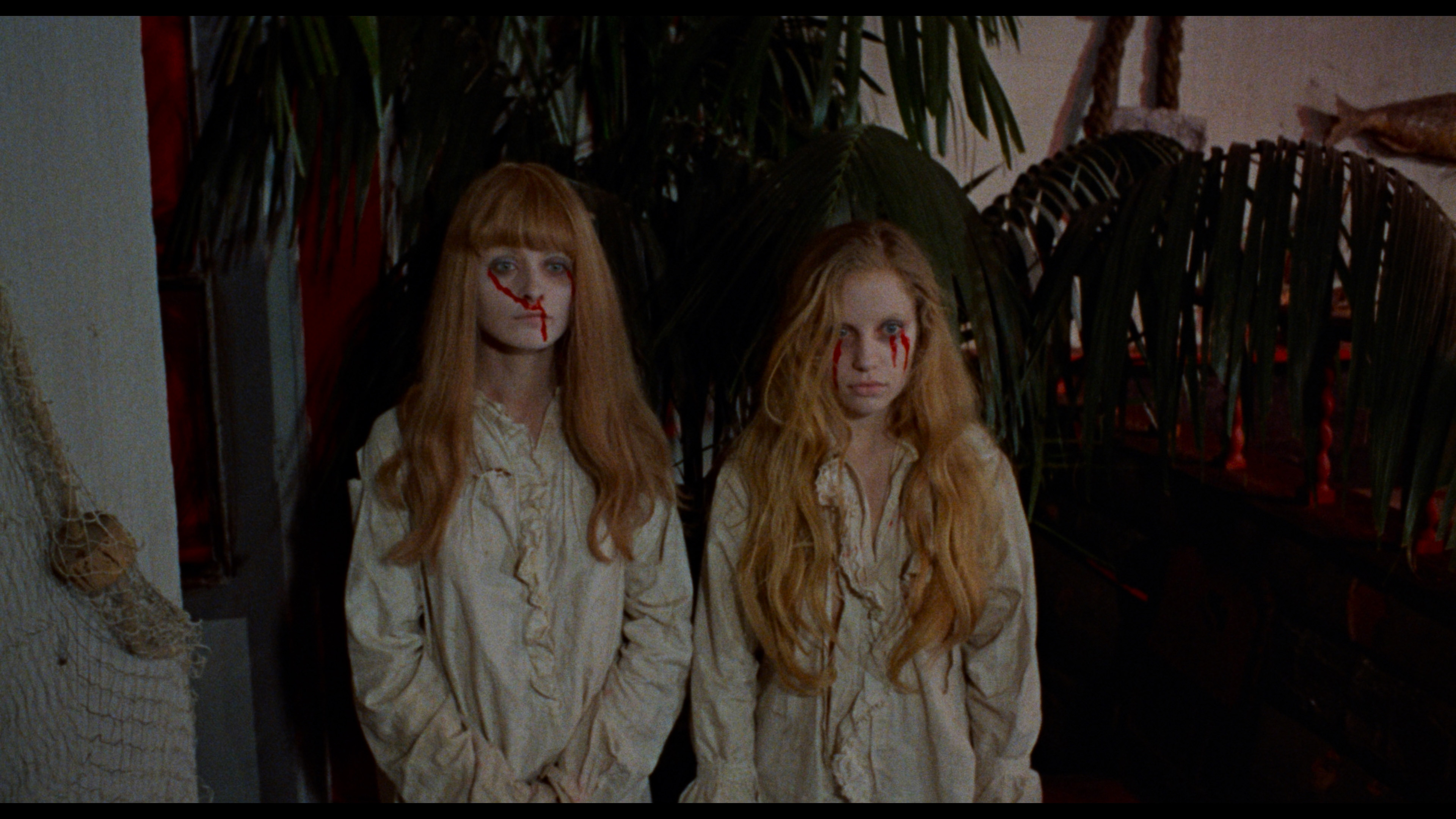 Rollin crafting some highly memorable sequences thanks to the eerie ruins and the strange beach scenery, punctured with the torn and ragged wooden remains of crashed ships. The performers are also allowed opportunities to exhibit more personality than usual with the villains making a memorable bunch, especially Tina's scene-stealing "kill them!" rants. Rollin's trademark visual fetish motifs are all present, including the mute blonde twins who were later turned up in various performer guises in Requiem for a Vampire, Phantasmes, and Two Orphan Vampires. A few moments are slightly spoiled