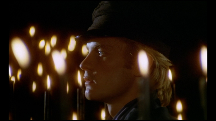 In America the film was released on VHS twice from Republic (in its various iterations), both times reflecting the AIP cut. The first DVD came much, much later from Kinowelt in Germany, with no English track but containing the extra snippets of Euro footage for completists. Raro's announcement of an American DVD release obviously posed the question of exactly what viewers would be getting, and surprisingly, it's the best of both worlds and then some. All of the European footage is here (Lom's extended speeches to Berger, the scene with Sybil's brother and mother, etc.), as well as the exclusive American footage; in addition you get two bonuses, an extended (but still brief) prologue before the credits and a strange, impressionistic little vignette late in the film implying Dorian's participation in a nude black mass ritual. The image quality (cited as being from the original negative) easily blows away every other version out there, including the few theatrical prints left circulating; it's in pristine condition, with exceptionally punchy colors and much more detail that allows you to savor some of the wilder touches in the sets and costumes. Hopefully Raro will consider this one for the Blu-Ray treatment soon, as it would look absolutely killer in high def. Significantly, this is also the first time the complete English language track has ever been released, and it sounds great; the Italian dub is also included (in somewhat rougher condition), and it's an interesting but inferior variant as only the English track includes Lom and Todd's original voices. (Berger was clearly speaking English as well, even though his voice was looped by another performer.) The Italian track also features optional English subtitles which are definitely not dubtitles; they instead translate that track directly and offer some surprisingly drastic differences in translation. Extras include a director filmography, an illustrated liner notes booklet, and most substantially, a half-hour video interview with assistant director Maurizio Tanfani, who covers everything from his partnership with the late Bruno Mattei to early casting considerations for the role of Dorian (Franco Nero!) and the problems involved in doing extensive make-up on Herbert Lom's nose. (Incidentally, this title was originally announced several months earlier, but the initial discs were faulty after the the layer change on the DVD; these were quickly recalled and the release date changed, so any new copies out there should be fine.)