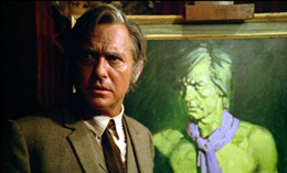 Shuffling the narrative a bit, the film opens in the '60s with Dorian murdering an offscreen victim in his attic and washing blood of his hands before sulking moodily in front of a fireplace. Through flashback we then leap back to the roaring '20s where Dorian attends a drag cabaret act with his painter friend Basil (Todd), who introduces him to the married but exceedingly amoral libertine pair of Henry Wotton (Lom) and Alice (Rohm). Dorian gives in to Basil's pleas to paint his portrait, and upon seeing its completion, Dorian verbally offers to exchange his soul for the picture to grow old instead of himself. Meanwhile he embarks on an ill-fated romance with an aspiring Shakespearean actress, Sybil Vane (softcore starlet Liljedahl), and as time passes he becomes increasingly decadent, whether getting groped by a middle-aged matron in a horse stable, cruising the local docks and bathrooms, dabbling in covert steam room trysts, or luring married woman to their doom. When someone finally figures out exactly why Dorian keeps looking so gosh darn youthful all these years, all of his demons finally rise to the surface...