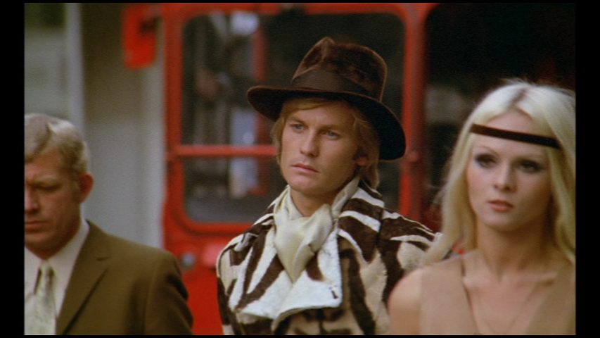 Anyone expecting an austere reading of the Wilde classic is going to be in for a major shock with this one. Even the early '20s scenes feel like a pop art concoction with plenty of eye-popping colors and fuzz guitars, and when the film finally slides into the "present day," the fashions run riot with Berger stealing the film in an astounding zebra-pattern coat that leaves good taste trampled in the dust. Then there's the cast, including a host of familiar faces from Jess Franco films of the period like Lom, Lee, Liljedahl, and Rohn; this would actually make a perfect double feature with Franco's Eugenie... The Story of Her Journey into Peversion, which shares two of its stars and covers fairly similar ground the same year-- and both were made courtesy of notorious producer Harry Alan Towers.