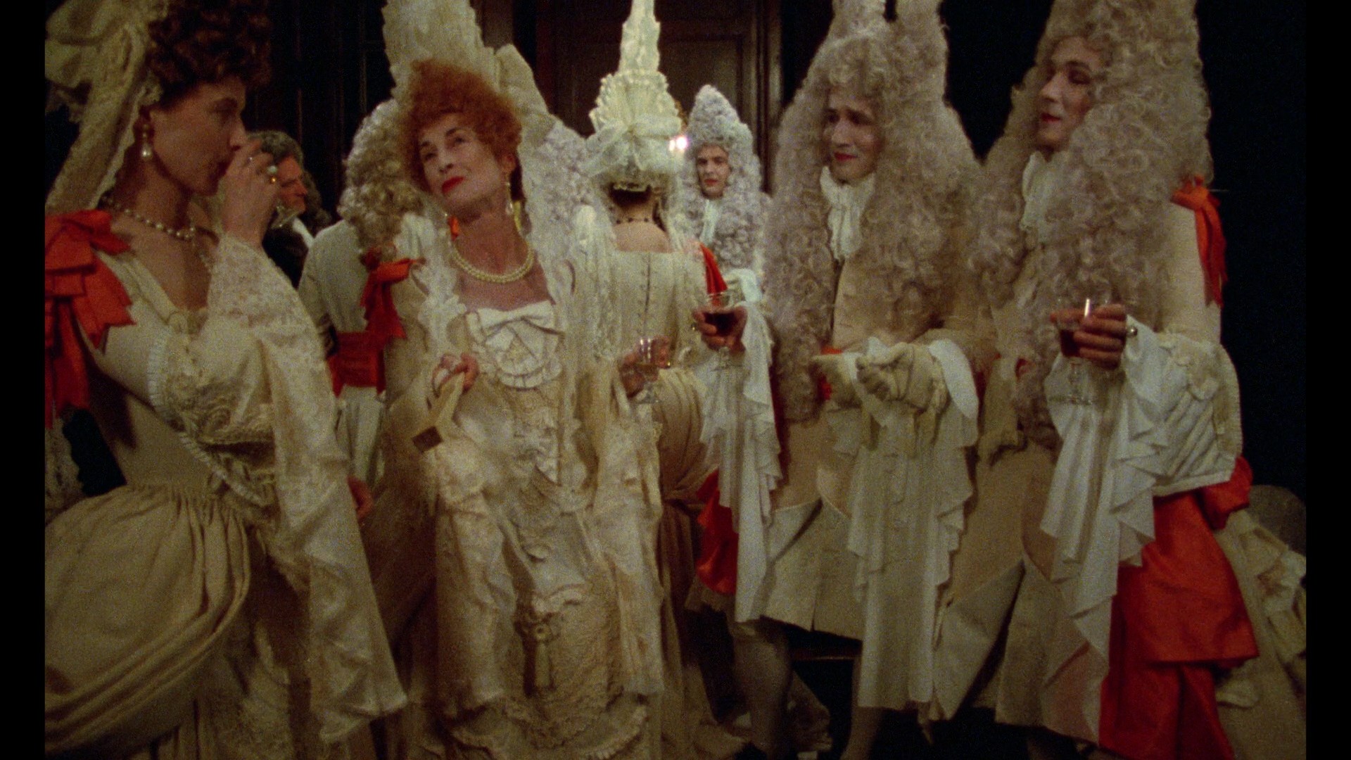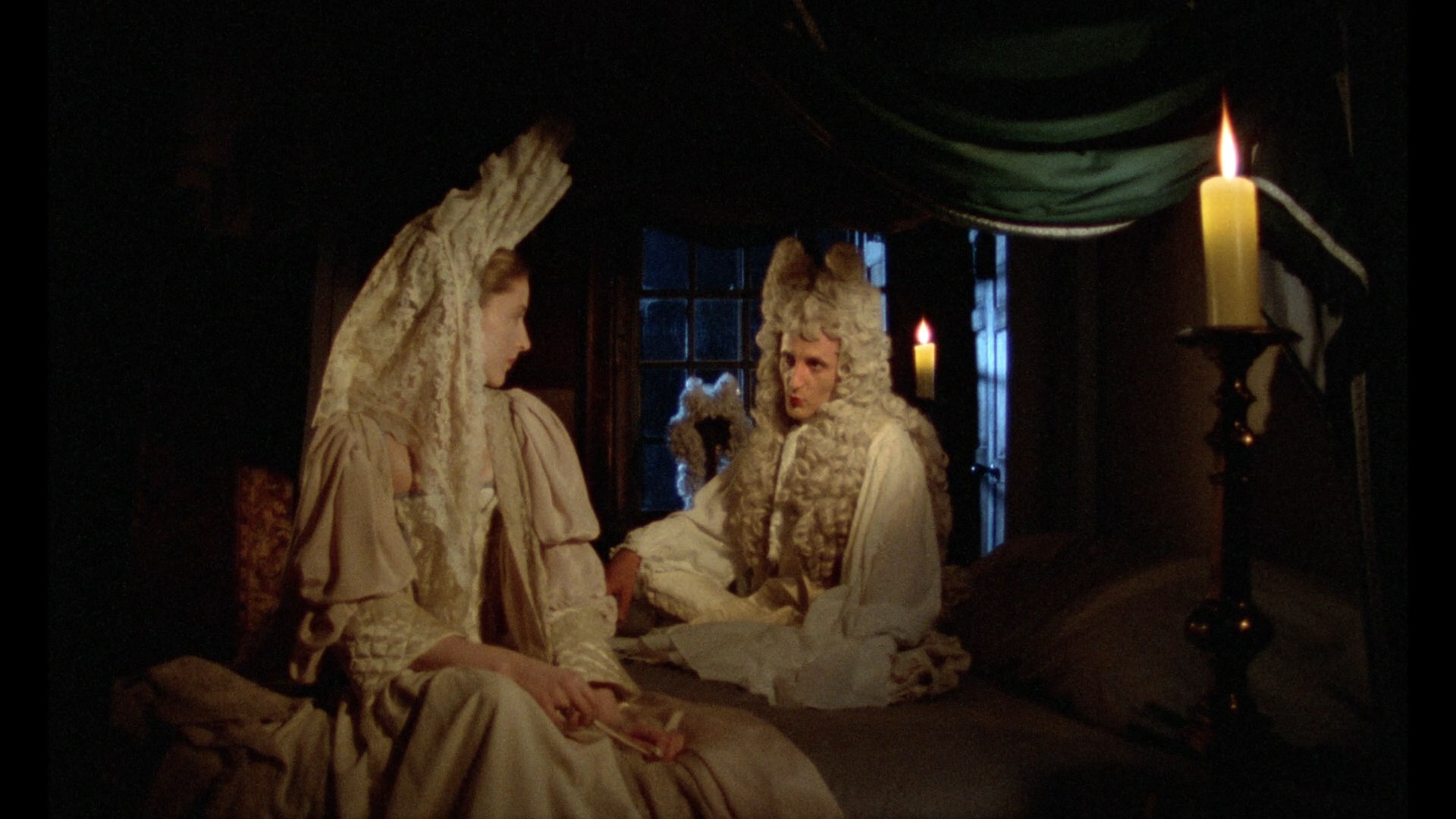 Amsterdam to his inability to swim and her coping with learning about romantic heartbreak the hard way. The 2002 Nyman interview is carried over here, while legendary novelist and essayist Angela Carter provides an outstanding analysis of the film from a 1982 episode of the Channel 4 series Visions. She's so magnetic and full of life here that it seems almost impossible to think that she would be gone a decade later. Two Greenaway shorts previously available on DVD collections are here since they bear aesthetic connections to the main feature: 1976's H Is For House (8m48s), a stylized inventory of a family's countryside residence, and 1978's A Walk Through H (42m13s), a quirky chronicle about an ornithologist and a series of bird-fixated drawings accompanied by an early Nyman score. The latter short appears to be a recent restoration and looks much better here than before. Previously available on the BFI's highly recommended double Blu-ray set The Best of COI: Five Decades of Public Information Films, 1981's Insight: Zandra Rhodes (14m39s) is a very Greenaway-esque portrait of the famed U.K. fashion designer at work and traveling abroad as he dives into her creative process. It's one of the flashiest things he ever directed with some visual and aural ideas that would later turn up again in The Pillow Book. The first pressing also comes with a 40-page insert booklet featuring new essays by Greenaway, Simon Barker, William Fowler and Charlie Bridgen, plus notes on the bonus films by William Fowler and Josephine Botting. The same core extras were ported over for an American Blu-ray from Kino Lorber and a French Blu-ray release from Le Chat Qui Fume, who also issued a limited two-disc edition with a UHD that sold out fairly quickly. Comparison grabs are below, and as this is one of the label's very few releases that employs HDR, it looks a bit darker, richer, and more detailed (thus, also with more grain) compared to its predecessors. Le Chat Qui Fume UHD (France)