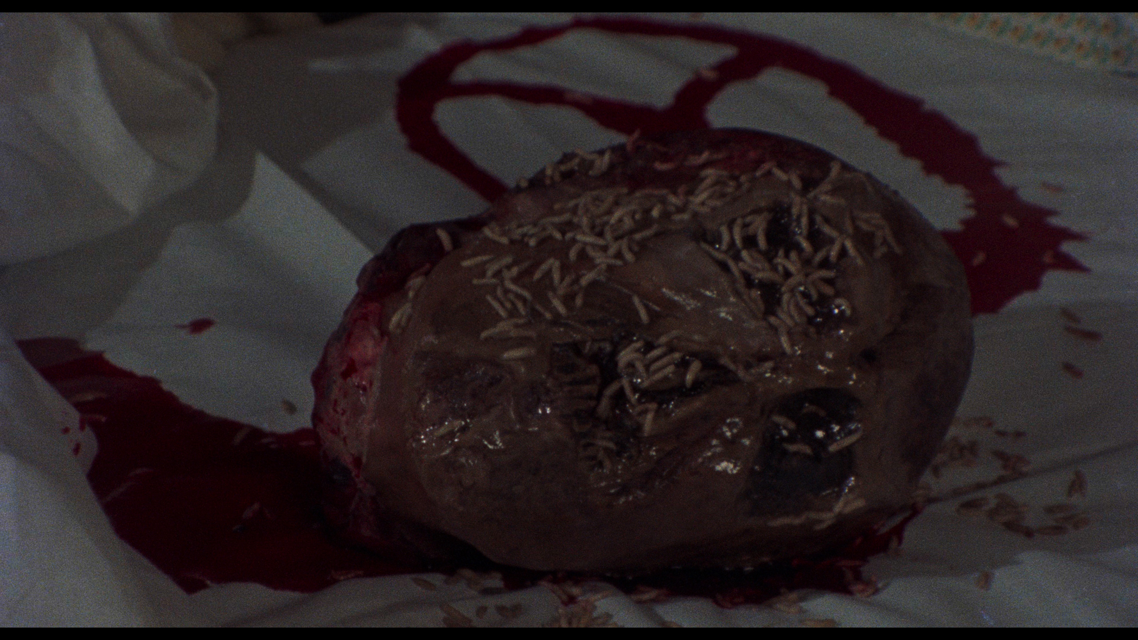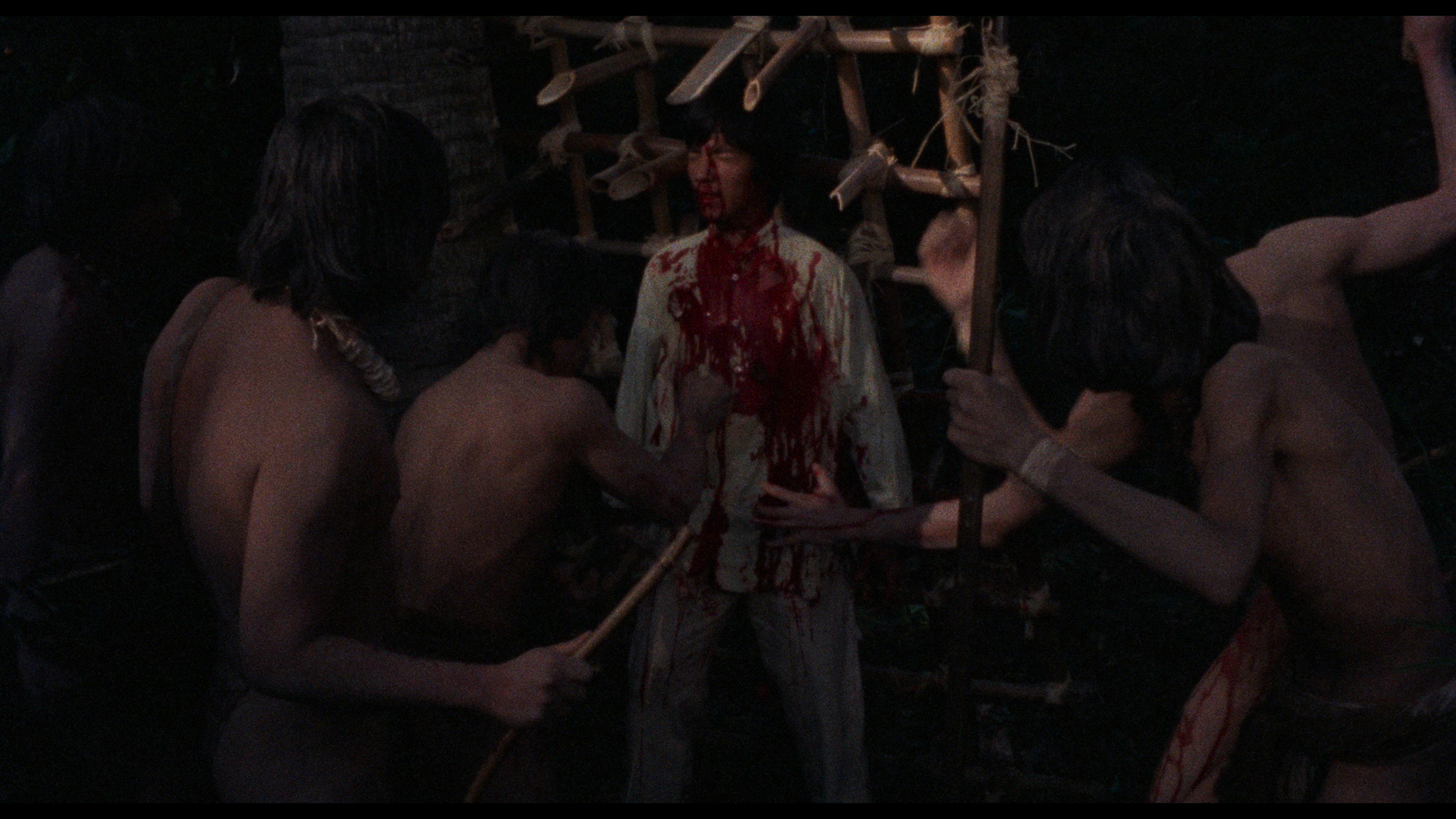 leaving behind hints of ties to an East Indies cannibal god named Kito. Dr. Peter Chandler (Zombie's McCulloch) and medical/anthropology specialist Lori Ridgeway (New York Ripper's Delli Colli) team up with bitchy reporter Susan Kelly (Buchanan) to head to the remote island that's reputed to be Kito's main stomping grounds, and as soon as Lori doffs her clothes for a shower, she's confronted with a maggot-infested severed head in her bed with a bloody symbol of Kito drawn in her sheets. Aiding their quest is Dr. Obrero (O'Brien), who is far more than he first appears -- and as you can probably guess from the American title, he has a very bloodthirsty operation going deep in the jungle.