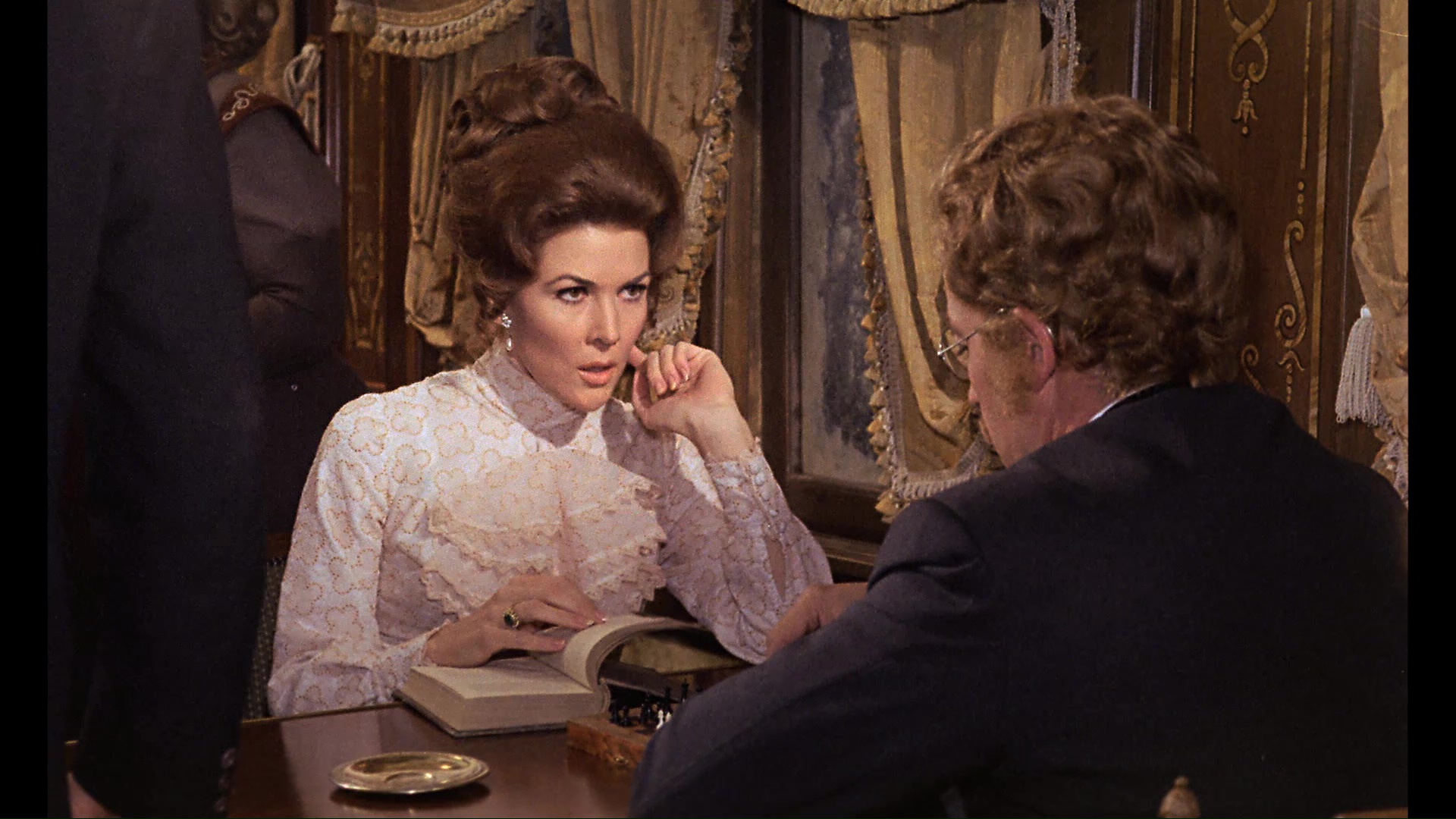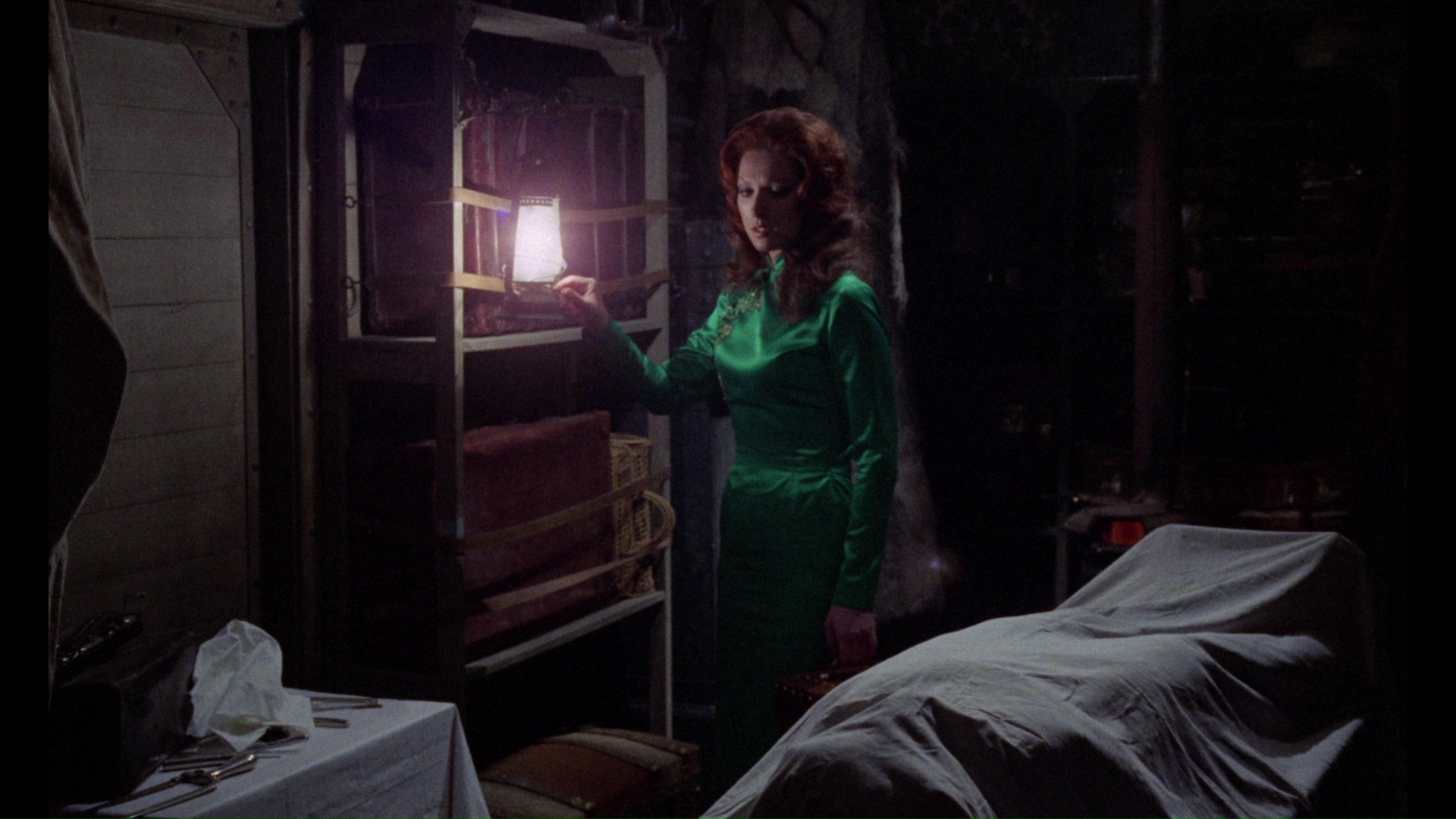Severin's Blu-ray release in 2011 (also available on DVD in the same combo pack, but why not go for maximum clarity?). Transferred from the original Spanish negative, it doesn't appear to have undergone much processing or clean up; colors are vivid and even startling inside some of the velvety train interiors, and there's only a small amount of debris (mainly during the opening credits). The framing also looks accurate throughout. On the other hand, this was one of Severin's earlier Blu-ray efforts and suffers from some compression issues that give it a chunky, unnatural look when it comes to the grain and movement involving the actors. Interestingly, this version contains the original Spanish opening credits (not a surprise) but also contains an on-screen shot of the train before the opening credits begin, which played out in complete darkness in the American version. Even more obvious is the restoration of the original end credits, which scroll as originally intended rather than the abrupt cut to black and long musical play out from the more