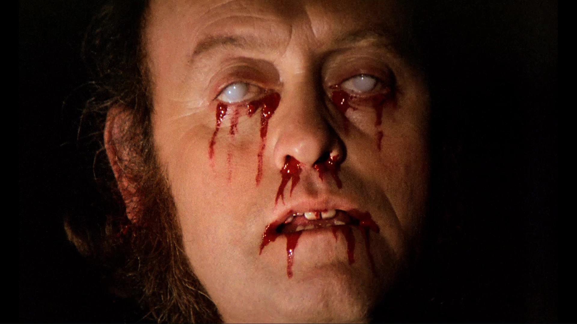 widely-seen US cut. All of the gore is intact here including all the cranial sawing and eyeball puncturing, a likely attempt to compete with the increasingly graphic Hammer films of the period. Audio options in lossy Dolby Digital include the English and Spanish tracks (the latter listed as stereo, but it sounds pretty mono until the end credits) as well as an 80-minute 1973 Peter Cushing interview with an audience in which he discusses his acting career in great detail. Topics include working with Terrence Fisher, his friendship with Christopher Lee, and an odd detour into the making of I, Monster. Video extras begin with a B&W video intro by Fangoria editor