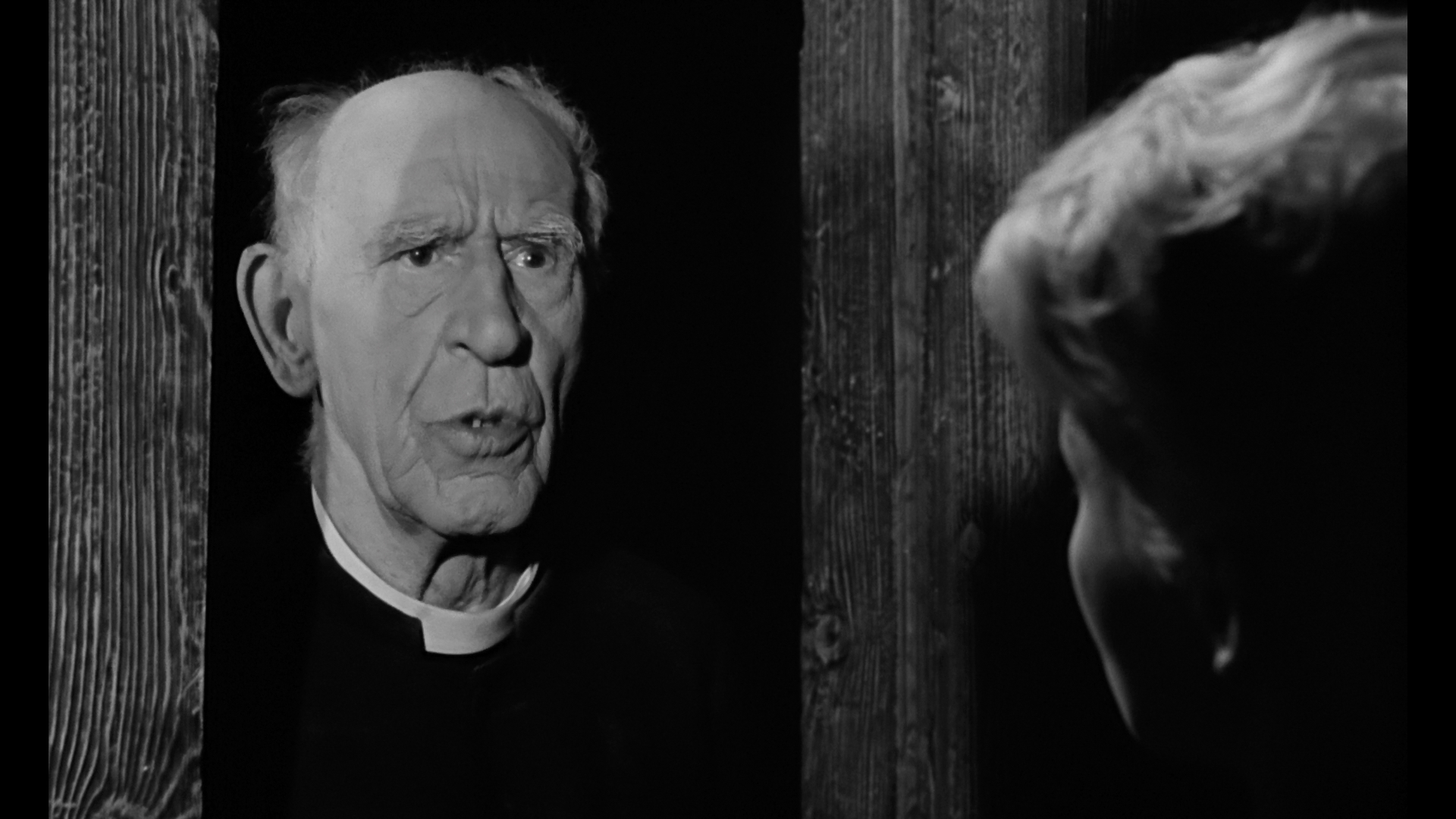 more room to breathe on a dual-layered Blu-ray (the better format to watch this film by far). Film grain is fine and modest but appears to be unmanipulated, whites are more pure and strong than the grayish flatness of the prior Blu-ray, and background depth in particular looks much better here for all scenes inside the inn. Frame grabs seen in the body of this review are from the Arrow, while comparison ones from the prior releases are below. The robust LPCM English mono audio (with optional English SDH subtitles) features the best sonic quality of all the releases so far as well, with some nice bass presence at times. The VCI DVD extras have been ported over here -- Moxey and Lee commentaries, the original three featurettes -- with the second Lee piece included as well; basically it's everything except the Hallenbeck commentary, and the U.S. Horror Hotel cut is included as well with identical picture quality. New here is a fine audio commentary by Jonathan Rigby (author of English Gothic: Classic Horror Cinema 1897-2015 and Christopher Lee: The Authorised Screen History), whose sonorous delivery makes for a perfect fit with the film as he weaves together connections to everything from The Curse of Frankenstein and The Skull to Montessori. The packaging features a eversible sleeve with the original poster art and a new design by Graham Humphreys and, in the first pressing only, an insert booklet with new liner notes by the BFI's Vic Pratt and a Moxey text interview.VCI BLU-RAY FRAME GRABS