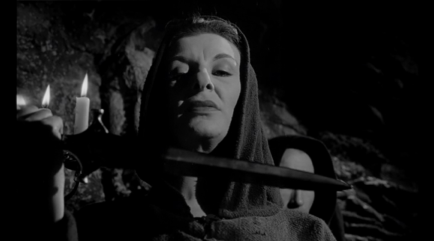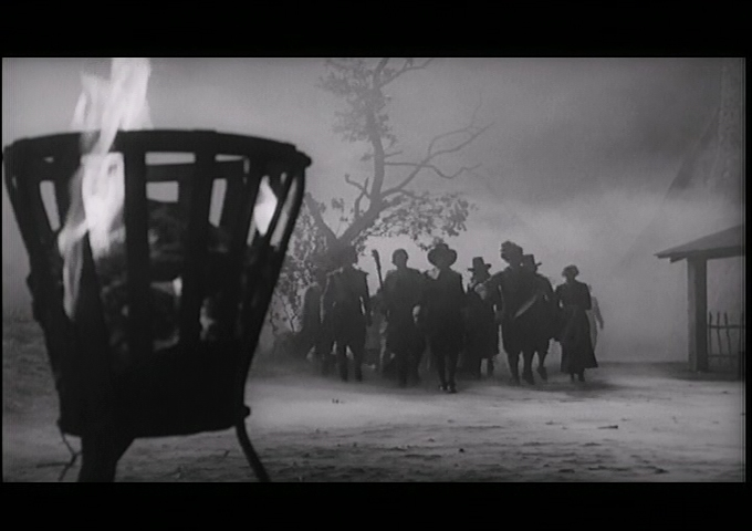 UK title arrived in 2001 and improved things considerably with a richly detailed, sharp transfer for its day. Lee also participates in this version through both a commentary moderated by Jay Slater and video interview (45m6s), along with a nifty video chat with Moxey (26m25s) and Venetia Stevenson (19m37s), who still looks quite lovely and charming. Moxey provides a commentary as well, and it's great hearing the future legend of made-for-TV horror films go into detail about the British film industry at the time and discuss building an entire sinister town on very limited studio means. The US trailer is presented with new digital title cards for some reason. Significantly, this was also the stateside debut of the European cut, which extends the opening execution scene quite a bit and runs almost two minutes longer. In early 2016, VCI brought the film to Blu-ray with all of its DVD extras ported over while adding on a new scholarly commentary by Bruce G. Hallenbeck about the film's significance and role in horror cinema, the shorter Horror Hotel cut, and an additional interview with Lee (16m37s), plus a liner notes booklet by Mike Kenny. Unfortunately the VC-1 encoded transfer (VCI's baffling codec of choice) displayed some significant issues including a very visibly cropped 1.78:1 interlaced transfer (other versions however around 1.66:1 and need that breathing room), a stingy compression rate, and a generally flat, soft appearance.