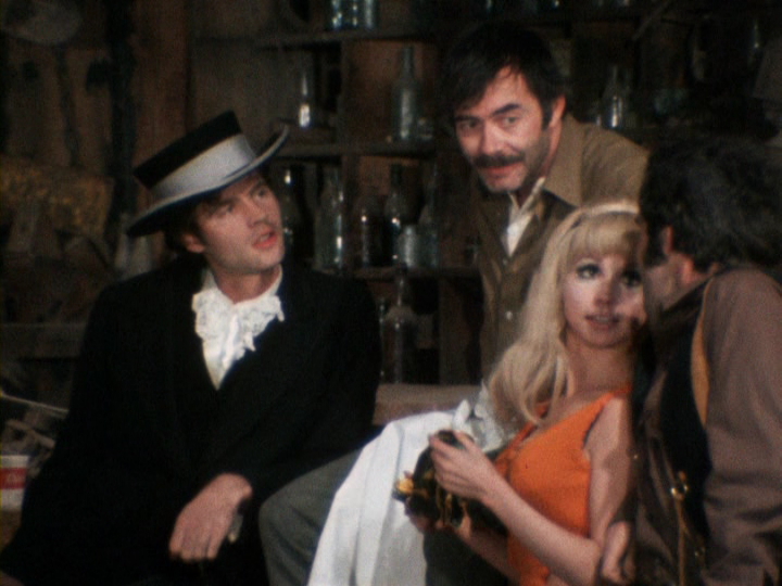 place at the saloon complete with a waitress dressed as a Playboy bunny and a showgirl named Lolita who comes speeding up in a Porsche so she can do a striptease on top of the pool table. Soon the entire clientele is knockin' boots around the building, Lolita's at the center of a plan to rob all the horny drunk customers, and a topless girl riding on horseback keep getting cut in for no good reason. Naturally, it all ends in a big shoot out with an ironic social message to boot.