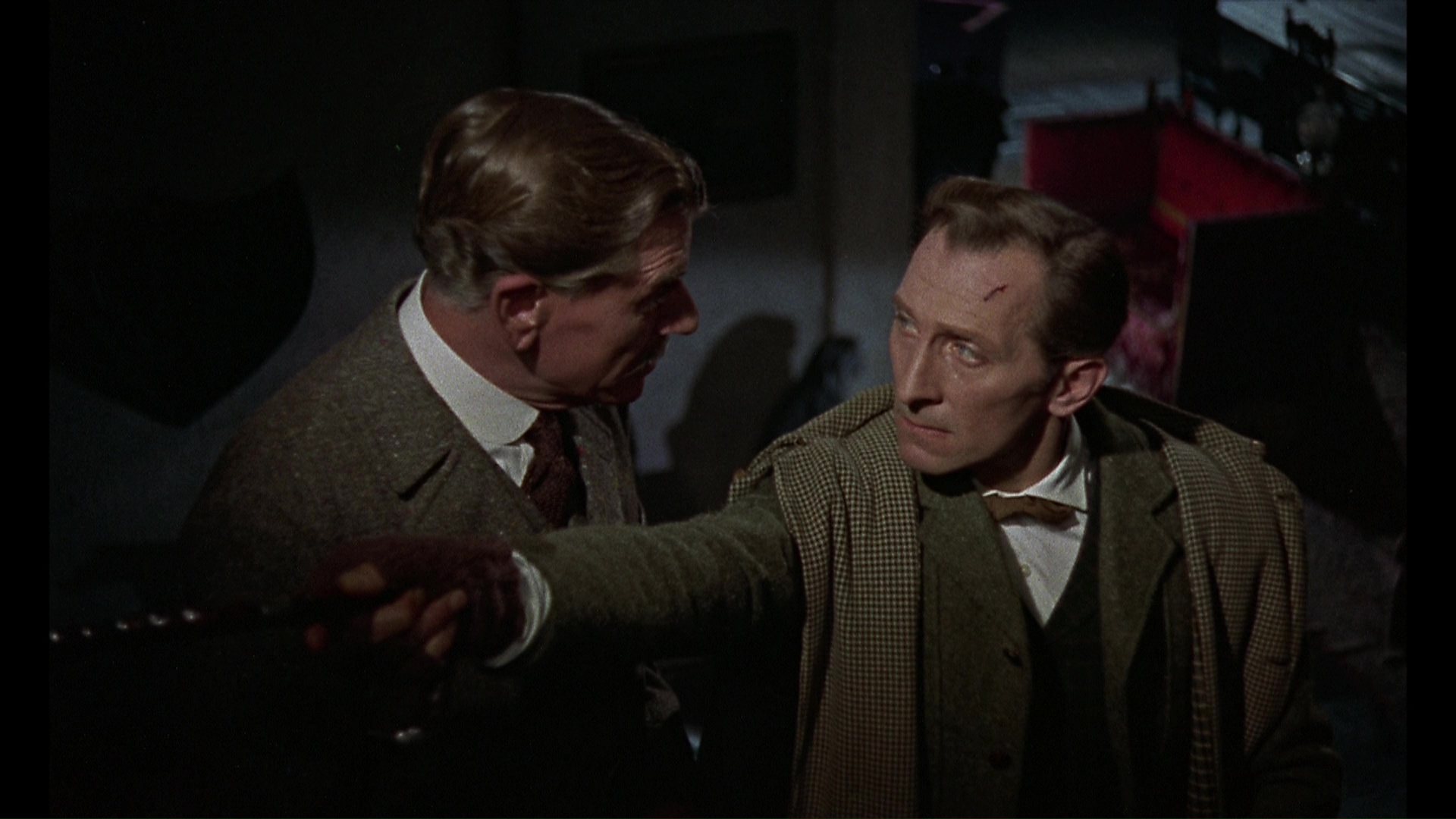 the studio's baffling insistence of presenting films in that aspect ratio in non-anamorphic transfers, a fate that also befell releases of titles like Some Like It Hot and The Train. Extras included the theatrical trailer (which apparently now only exists in black and white) and an entertaining "Actor's Notebook: Christopher Lee" featurette with the thespian talking about friendship with Cushing and his affinity for Conan Doyle. That master was the norm for well over a decade around the world, which was fine for