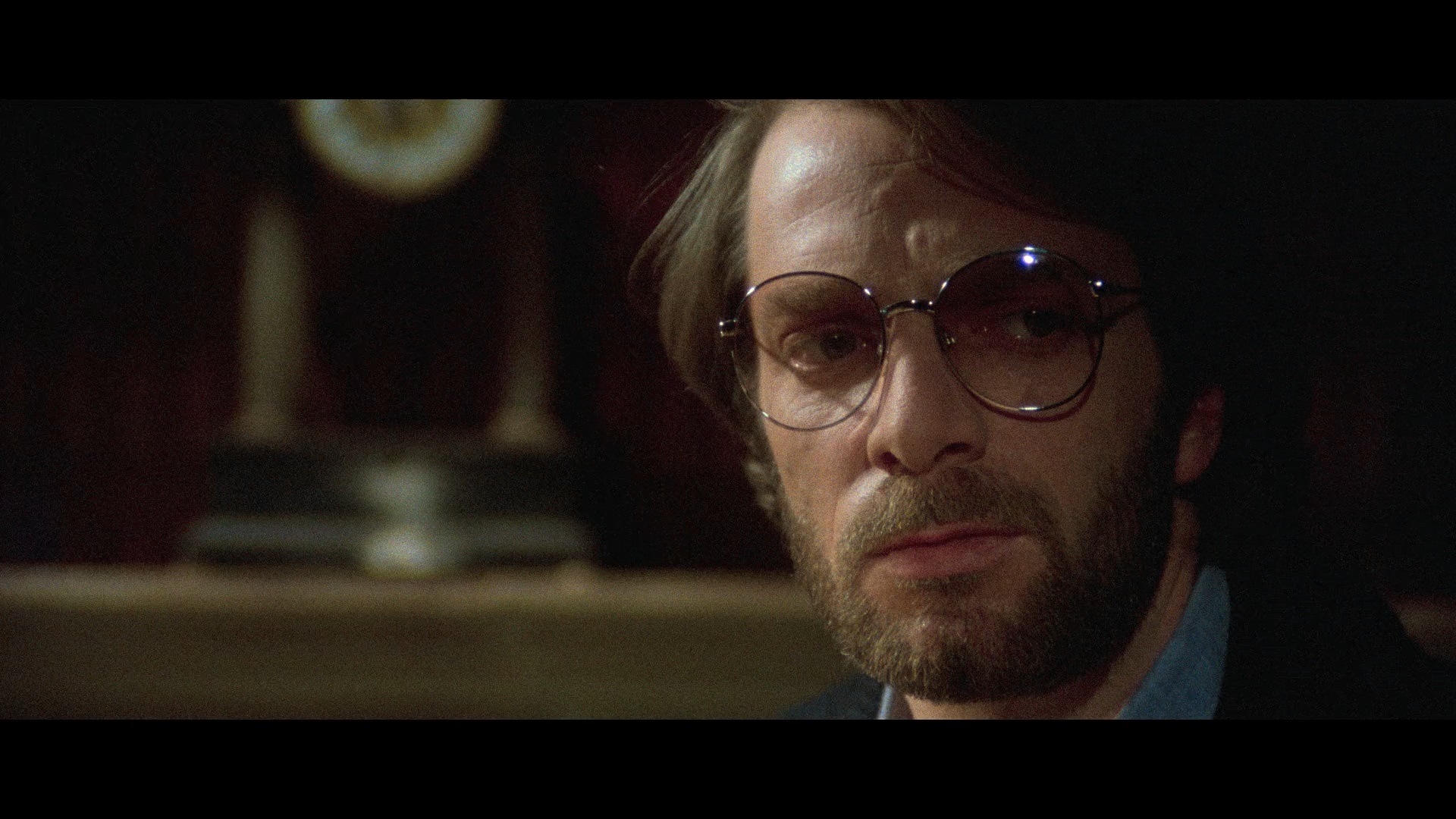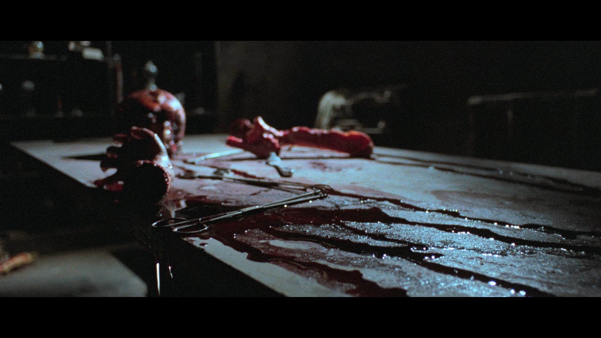 Eight months later, Blue Underground added this film to its roster of Fulci 4K upgrades with a UHD edition that follows the model of Zombie by containing two discs, a UHD of the feature film and the Blu-ray of bonus features. The UHD is configured the same as the earlier Blu-ray by containing the trailers, TV spot, galleries, deleted scene, and audio commentary, with the same audio options as well as the addition of a Dolby Atmos track that sticks far closer to the tone of the original mix than the far more dramatically separated one on New York Ripper. That's largely due to the fact that the Rizzati score is kept mostly focused on the front channels here, with the rear and upper channels used for more subtle ambient effects (most notably in the outside Boston street scenes). The transfer is obviously from the same strong source but improves here as you'd expect with more refined detail and, most dramatically, the addition of Dolby Vision HDR allowing some of the colors to really sing where they need to. In particular, those multicolored glass windows inside the house look stunning now and really pop off the screen. Dr. Freudstein would be pleased.