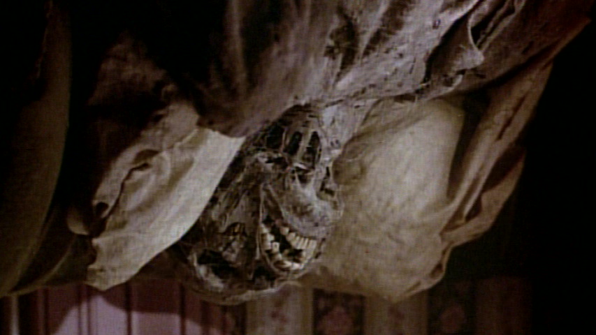 some reason). Part of the “Katarina’s Nightmare Theater” line from Scorpion, the DVD represents the complete Canadian cut of the film and looks much brighter and more watchable than previous video masters. It’s still obviously very imperfect, with some chroma noise, graininess, shimmering, and other assorted deficiencies that appear to originate from the licensor’s outdated master, but at least you can see what the heck’s going on even if it isn't too pretty. Wrestling star and Caroline Munro lookalike Katarina Leigh Waters bookends the film with tongue-in-cheek sequences, kicking off with a dramatic recitation of the film’s memorable poster tagline. Director Paul Lynch and screenwriter William Gray appear with her on the audio commentary, which is moderated by yours truly (so it’s impossible to really critique it, but hopefully everyone will enjoy it). Also included is the alternate R-rated opening scene transferred from VHS, the original theatrical trailer, and bonus trailers for Final Exam, Nothing but the Night, The Devil within Her, The House on Sorority Row, The Incubus, and The Pyx.