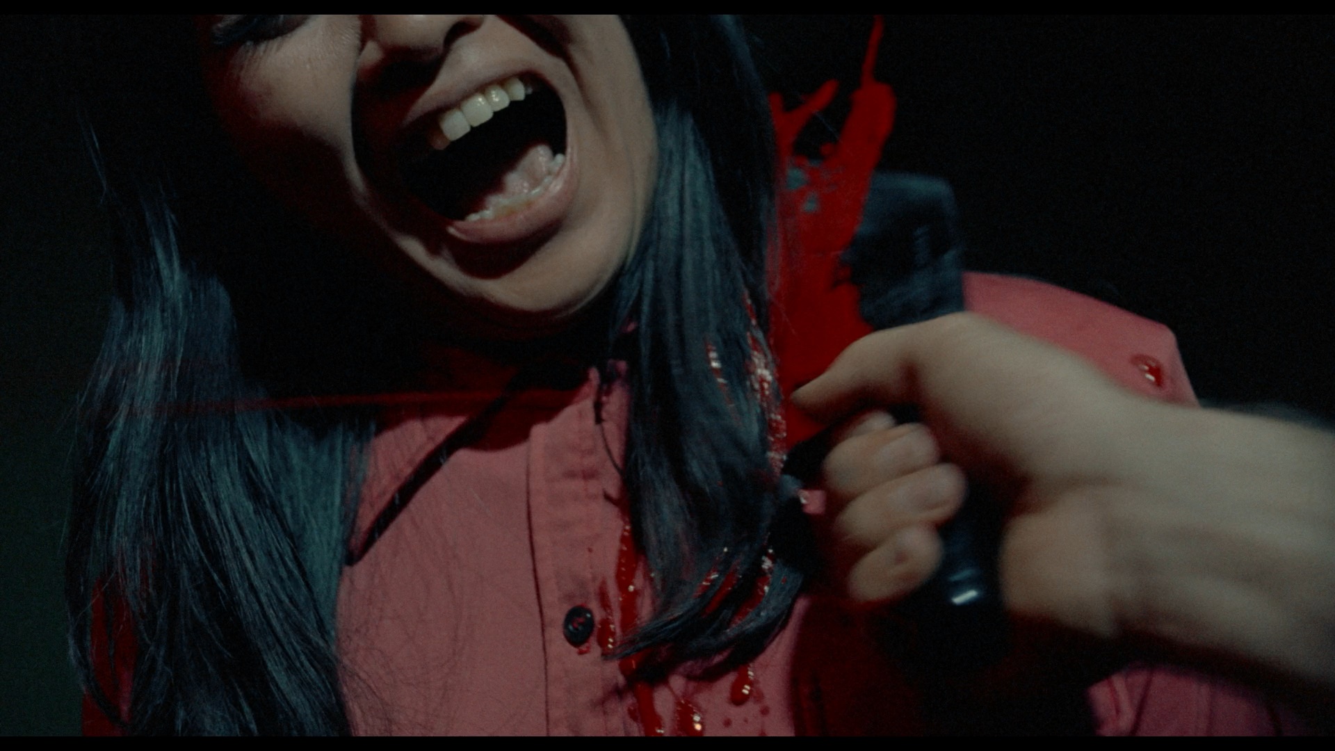 Out of circulation in any kind of official capacity since its Unicorn Video days on VHS, Hollywood Horror House received a major makeover from Vinegar Syndrome in 2020 as a dual-format Blu-ray and DVD edition sporting a very vibrant and impressive transfer cited as a new 4K scan from the 35mm camera negative. It's a real beauty and up there with some of the label's finest work, especially if you're a fan of druggy visuals with loads of blazing primary colors. You also get to really savor the buckets of gloppy stage blood that mark this one as a bit of a proto slasher at times. The DTS-HD MA English mono track is also in perfect condition and comes with optional English SDH subtitles. The main extra here is a new audio commentary by David DeCoteau and David Del Valle, who dive enthusiastically into all things Miriam Hopkins (including her fiery temper and appreciation for literature), '60s diva horror, Hollywood history, and other figures from the era like Curtis Harrington and Geraldine Page. It's a fun, dishy track in the same vein as their one for The Killing Kind, so check it out. A promotional image gallery (1m38s) is included with stills from the 1977 Manson theatrical run as Savage Intruder.