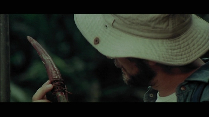 92.) The letterboxing adds a considerable amount of vital information to the sides, while the color fidelity is adequate for the time. Extras are where this disc easily excels; Deodato contributes both a video interview and a commentary track (in Italian with optional English subtitles), while Foschi also appears for a frank English-language video interview (20m14s). Also included is an English interview with Rassimov (6m43s), who recalls some difficulties with all the wildlife in the area as well as his ongoing friendship with Deodato. Other goodies include an extensive video gallery of posters and lobby cards (6m20s), trailers for this and other Shriek Show titles, and a batch of international color lobby card reproductions. The trailer, under the Last Cannibal World title, is especially fascinating as it includes Deodato and crew (dubbed in English) pontificating about the making and importance of the film, intercut with cartoon teeth transitions.
