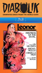 Despite its failure to set the box office on fire, Leonor was one of the earliest films released on VHS by Magnetic Video in its shortened U.S. version. After that it was usually spoken of far more often than actually seen, bypassing the main DVD era entirely apart from a so-so German release. In 2018, Scorpion Releasing revived the film on Blu-ray with a bona fide special edition that presents the feature in both its truncated U.S. cut (English dub only ) and the longer Spanish version, either in English or in Spanish with properly translated English subtitles (all DTS-HD MA mono). Since this is such an international production you'll have to put up with dubbing no matter how you see it, but the Spanish one is a more elegant and generally preferable. There are some interesting differences between the two transfers, with the U.S. cut more spaciously framed at 1.66:1 and the longer one a bit tighter at 1.78:1, the latter looking a tad warmer and sometimes darker as well. Both are perfectly pleasant watches and vastly superior to what we've had before, but it's curious to see a marked presentation contrast between them. For the record, the shorter cut basically trims down the opening third or so of the film so Ullmann gets back into the story a lot faster. The longer cut can also be played with a new audio commentary by Troy Howarth, who tackles the film from a European horror angle and makes a case for it as a significant and rewarding work featuring all of its participants at the top of their game. His admiration for the film is quite heartfelt and infectious at times, and not surprisingly he's quite infatuated with Muti, too. Incredibly random bonus trailers are included for Conduct Unbecoming, Caravan to Vaccares, Barbarosa, and The Salamander.