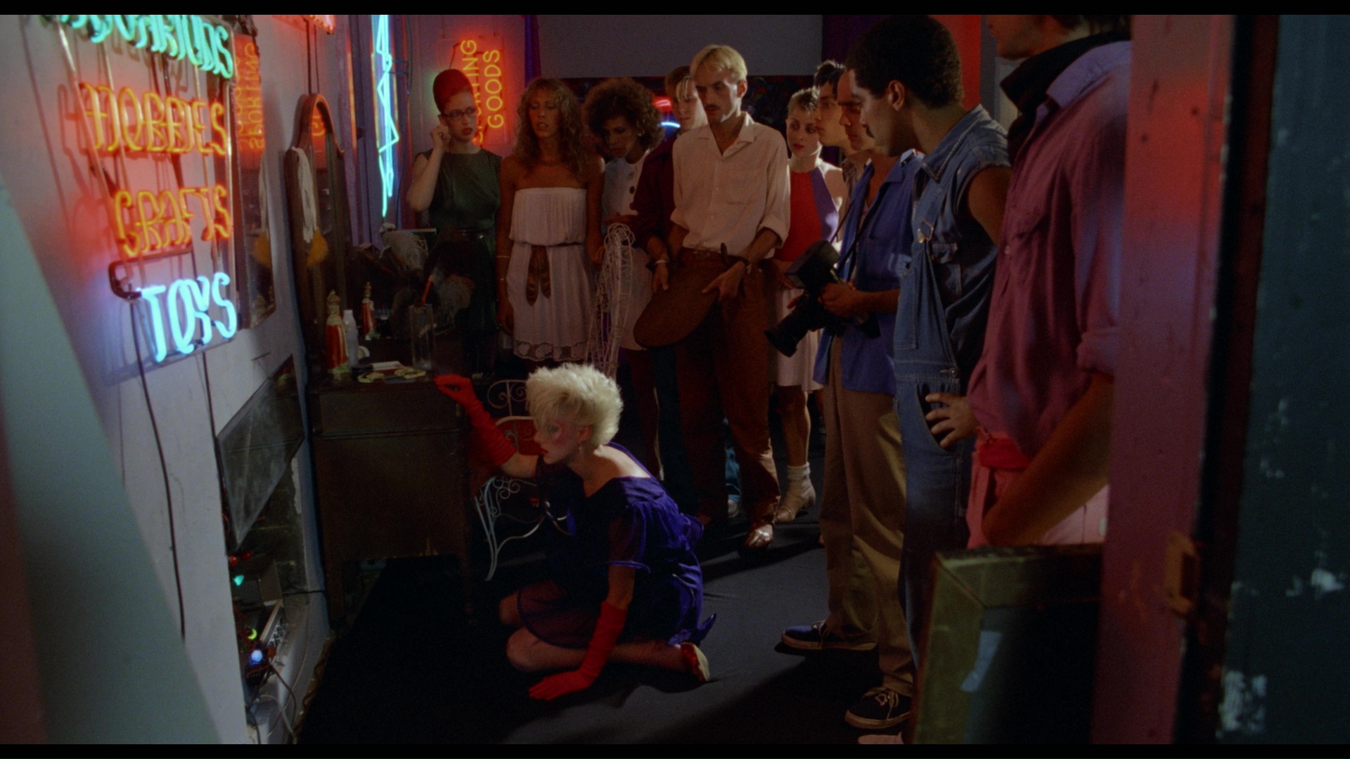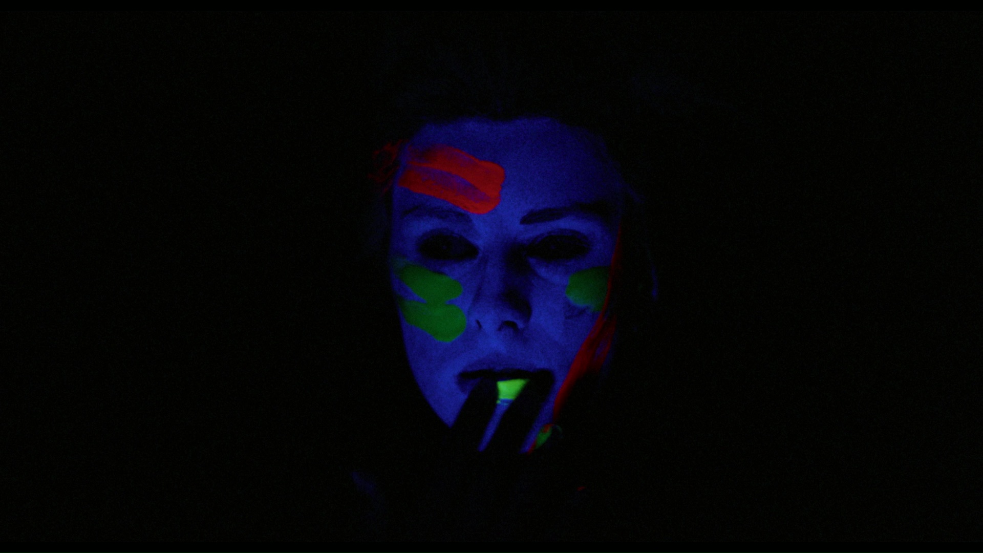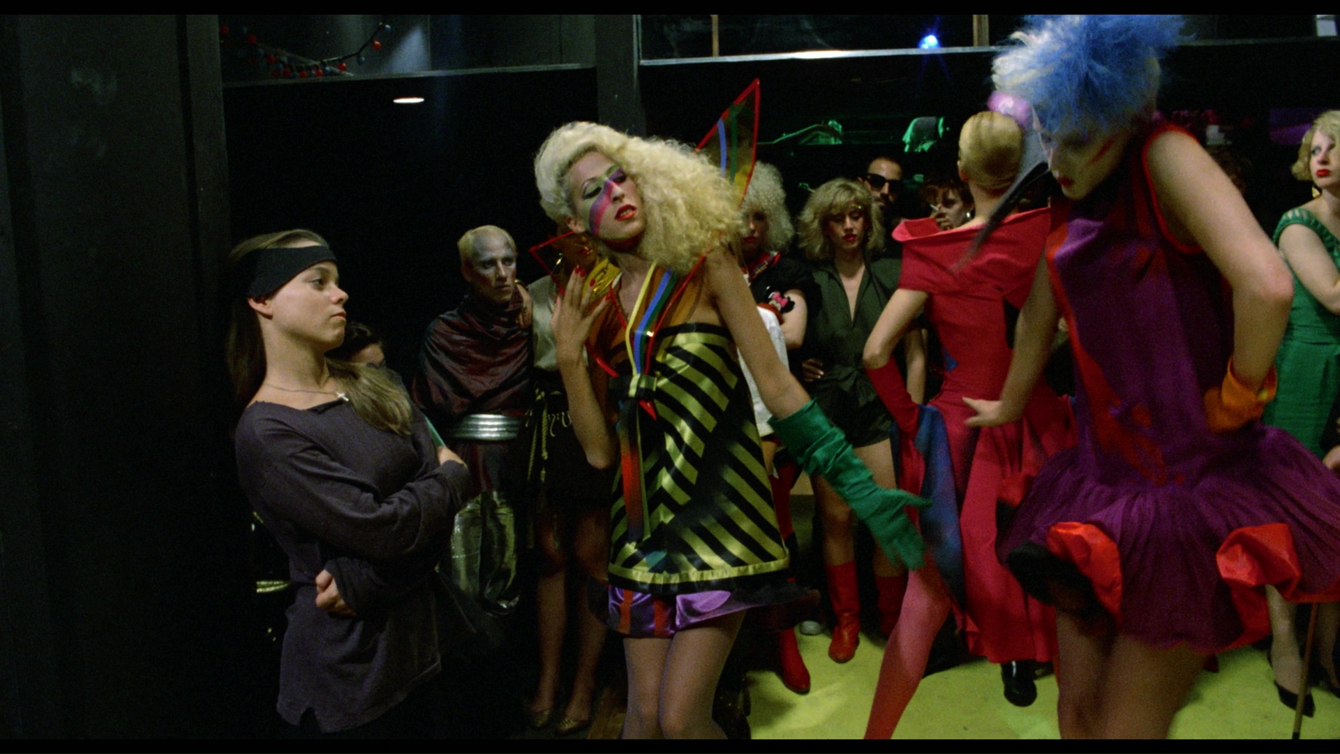 production and costume designer Marina Levikova-Neyman, director of photography Yuri Neyman, makeup and hair designer Marcel Fiévé and actors Susan Dougkas/Brady, David Ilku, Neke Carson, and Jeff Most) for a more extensively illustrated look at how their paths crossed with the making of this film, with some fashion props pulled out storage and lots of vintage photos and amateur film clips shown off along the way. (Oddly, there's way more nudity in here than in the main feature!) Even more Tsukerman and Carlisle can be found with musician Clive Smith in a a Q&A from a 2017 Alamo Drafthouse Yonkers screening (37m19s), which has somewhat bumpy sound quality but is worth checking out for the soundtrack insights. A batch of outtakes (13m5s) provides more eye-searing colorful mayhem, while the alternate extended opening (9m59s) and rehearsal footage (11m56s) from the DVD are ported over here. Finally the disc (which also comes with a liner notes booklet by Samm Deighan) rounds out with a batch of trailers (a 31s TV spot, a 1m43s "critics are raving" promo, and 1m45s and 3m standard trailers) and a batch of lively production photographs (2m9s). Your mind will never be quite the same afterwards.