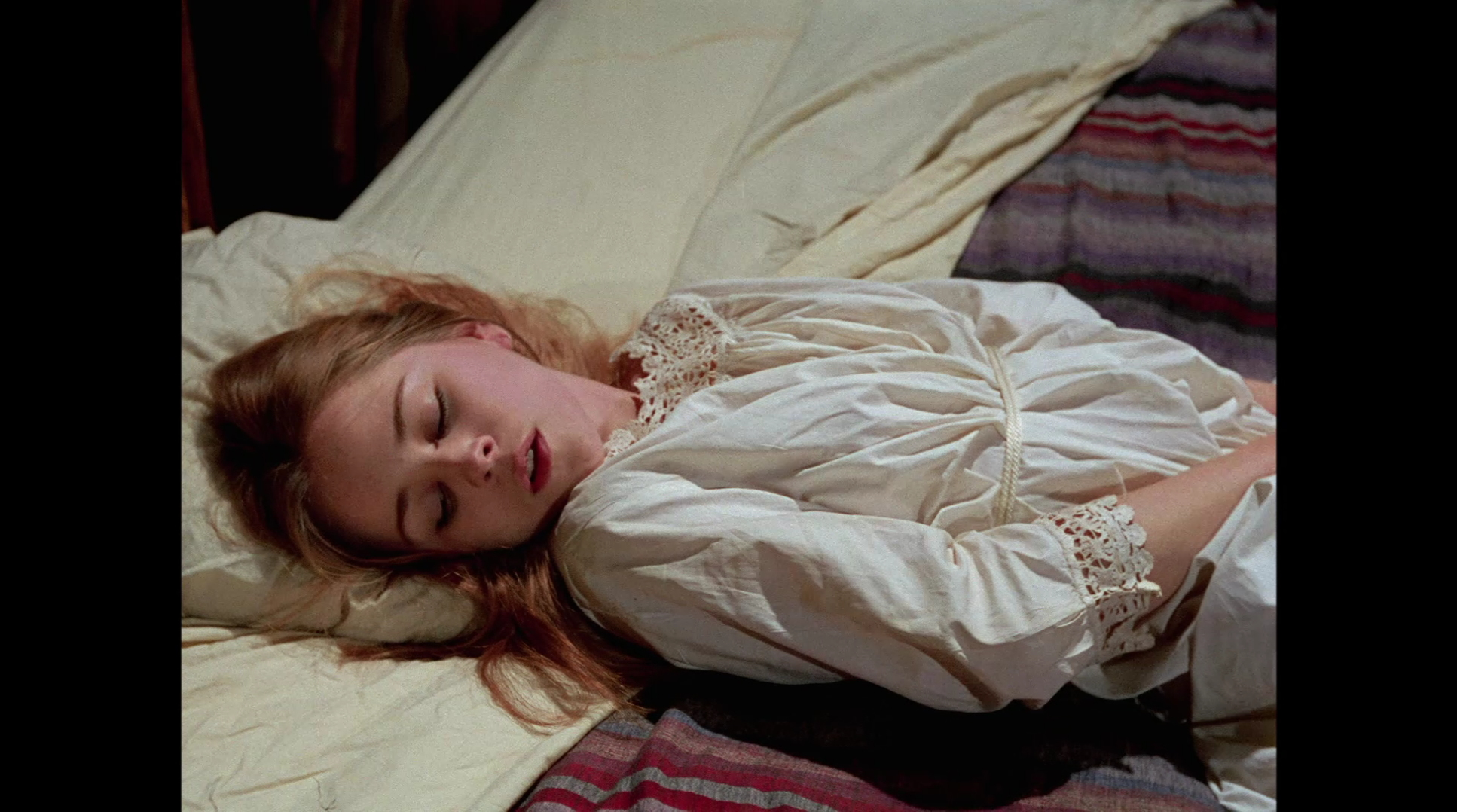 out what looks like any digital futzing to try to make the image look more slick or modern. Really nice all around. All three are presented in their open aperture 1.37:1 aspect ratios, which once again raises the question of how Lewis intended to frame his films in the first place. His compositions have often tended to the wonky side, and while films like Blood Feast were quite obviously kept safe for theatrical exhibition in the vicinity of 1.85:1, some of his other titles like Something Weird manage to look odd no matter how you frame them. Ecstasies of Women is another of those oddball titles, with opening credits featuring massive open areas at the top and bottom indicating this was intended to be matted for theatrical exhibition. (And if you zoom it to 1.78:1 on a widescreen TV, it's obvious the, ahem, focus of the framing is supposed to shift pretty dramatically.) On the other hand, many other scenes wouldn't work matted at all, so it's really anyone's guess. In any case, the decision to just present all of the available visual information is probably the safest, and it also reveals some probably unintentional flashes of unusually graphic exposure of both Camp and Mills in Ecstasies. Linda & Abilene plays just fine masked off to 1.78:1 if you feel so inclined, while Black Love is definitely best left alone as is. All of them are most impressive on the Blu-Ray, which is progressive and encoded with a healthy bit rate. Each film also contains its original theatrical trailer, and all of them are pretty great. The Ecstasies of Women one is textless and features Camp introducing himself and selling the film to the audience while riding one of his female stars, while the very long (over five minutes!) one for Linda & Abilene tries to make the film sound a lot more lurid than it really is and keeps coming up with ways to work "69" into the pitch. The one for Black Love is, well, pretty representative of the final film, complete with the same great title card. Also included is a thorough, well-written set of liner notes by Casey Scott, who rifles through the sometimes baffling available facts about the films, comes up with a plausible explanation for Matt's participation in the first two titles, and notes some of the more outrageous tidbits about the productions, such as Black Love's connection to a local Baskin-Robbins store owner! A real dream come true for vintage exploitation fans, this is quite an auspicious debut for Vinegar Syndrome and easily one of the most persuasive arguments for any cult film fans to switch over to Blu-Ray if they haven't made the leap already.