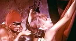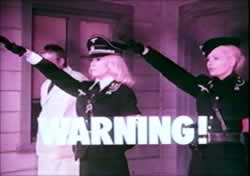 The Ghastly Ones, Deep Red, Beyond the Door, House of Exorcism, The Devil's Nightmare, Lady Frankenstein, Flesh Feast, Tales from the Crypt, Vault of Horror, Horror of the Zombies, Blood Eaters, Orgy of the Living Dead Triple Feature, Diabolical Dr. Z, Africa Blood and Guts, Night of Bloody Horror, Silent Night Evil Night, The Mutations, Blood and Lace, The House that Screamed, Two Thousand Maniacs!, Night of the Living Dead, God Told Me To, Horror on Snape Island, Man from Deep River, Ilsa - She-Wolf of the SS, Last House on the Left, Carnage, Color Me Blood Red, Mad Doctor of Blood Island, Silent Night Bloody Night, Bloody Pit of Horror, and Night of the Bloody Apes. Whew! Yeah, you've probably seen most of these elsewhere by now, but this tape did it first and did it best.