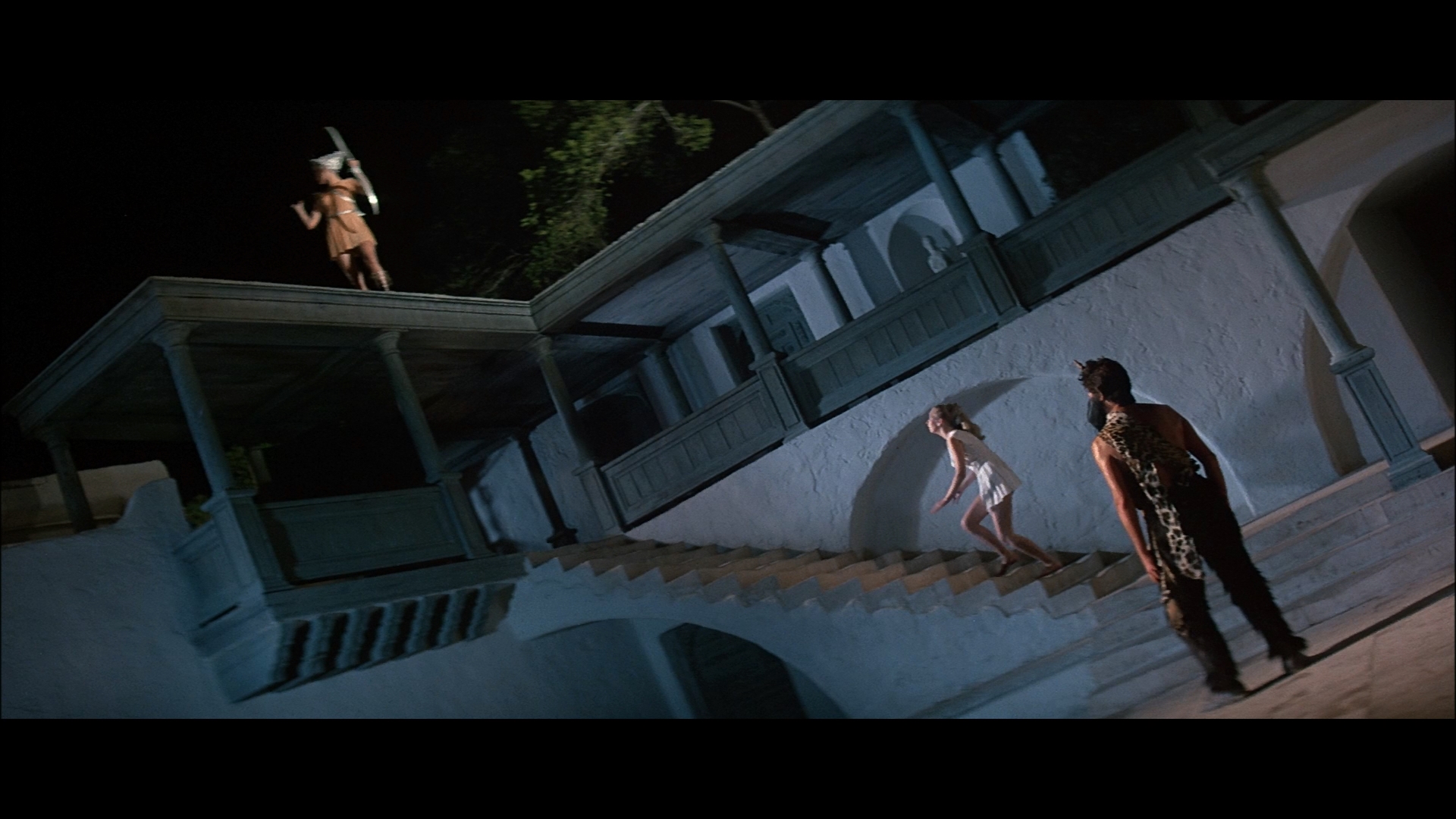 American cinema. Cinematographer Billy Williams (Women in Love) appears for a new interview (12m15s) covering the reason the film wasn't shot in Spain and why Bergen's exterior close ups had to be shot near the end of the day, and as with other participants, he finds the film "strange" and "unfathomable." He also explains how Quinn was made to feel welcome on the first day of shooting and notes how he likes his camera to be supportive of wherever the actors want to go. Set designer Tim Hutchinson, son of the film's art director William Hutchinson, appears next for a chat (10m22) about choosing the locations and determining which sets had to be constructed, with interpreters used for local labor. Finally hairdresser Stephanie Kaye recalls in a brief piece (5m43s) the challenges of showing Quinn's variable appearances between the past and present via toupees and bleach and tells a crazy story about Bergen having her eye makeup done in the dark.