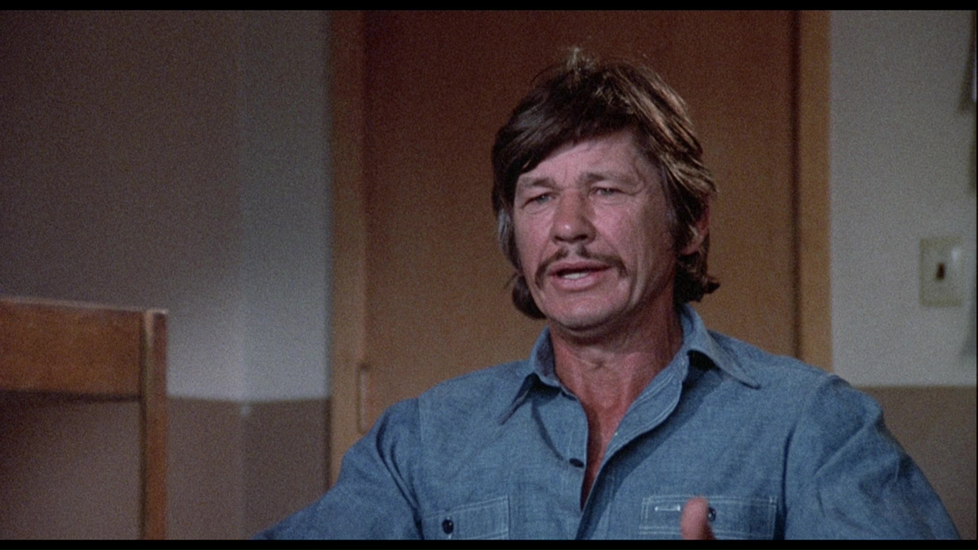 script puts viewers on Bronson's side right from the beginning when he stands up to a bigoted store owner, and interestingly enough, its themes of racial tension, labor disputes, and corrupt business influences resonate today even more than they did at the time. It would certainly be interesting to see the reaction if Jason Statham ever starred in a remake of this one. Fleischer keeps the story cracking along at a steady pace, giving Bronson a wide berth to run the show without any other major stars to distract audiences. Also noteworthy is the catchy, evocative score by Charles Bernstein, with a tone similar to two films he worked on around this one, White Lightning and Gator.