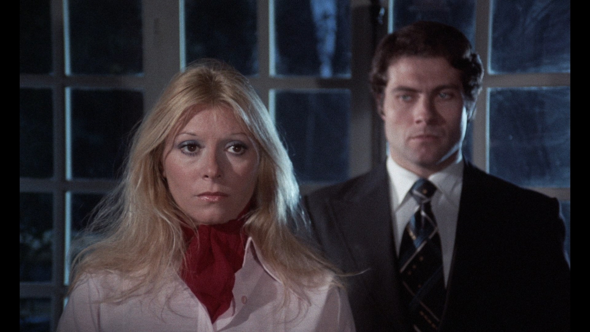 taken from an okay print, though the contrast is a bit harsh and print damage is evident throughout with incredibly awful audio to boot. A subsequent UK standalone release followed from Odeon as well as a pairing with Blood Mania from Code Red (squished out from 1.66:1 to 1.78:1 with squashed-looking actor faces), but a better option came with the double feature from Scorpion on DVD co-billed with a significantly more flamboyant title, the madcap witch romp Terror (another Crown release), directed by Norman J. Warren (Satan's Slave), which has since been reissued from Indicator and Vinegar Syndrome. The Scorpion improves right out of the gate with an uncut, anamorphic transfer of The Devil's Men correctly framed at 1.66:1. The film still isn't much of a visual dazzler, but the improvement is obvious and the extra little helpings of topless nudity and bloodshed help make it a much more lively experience than the TV-friendly slog most Americans had to endure for decades. No real extras per se on that first film, but both titles are bookended with hosting sequences (and an intermission in between) featuring horror hostess Katarina Leigh Waters, which makes sense as this is part of her "Katarina's Nightmare Theater" line. Once again she's on her most comfortable turf here talking about British '70s horror (or in one case, British-Greek hybrid horror), and her enthusiasm makes for pleasant viewing.