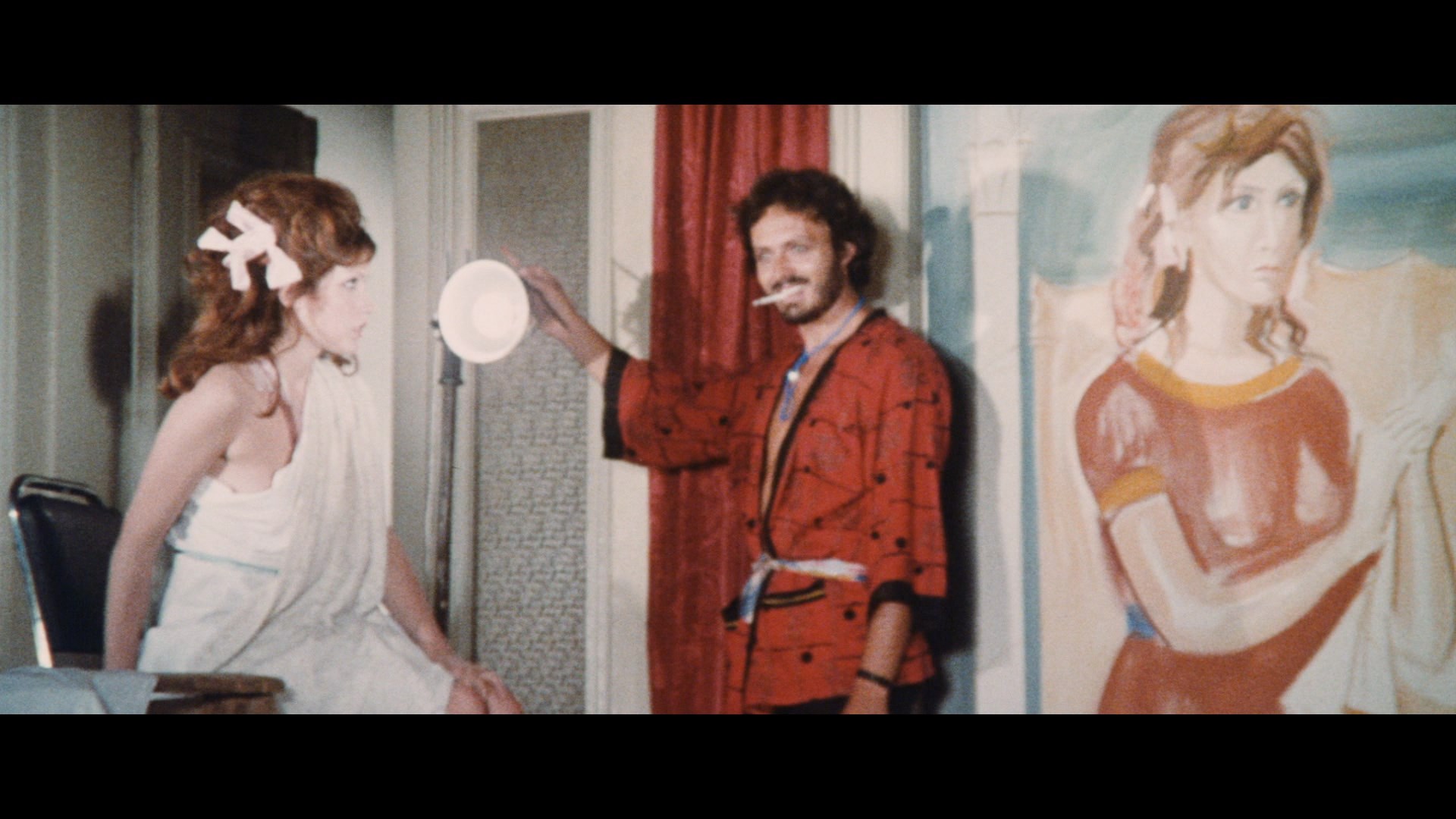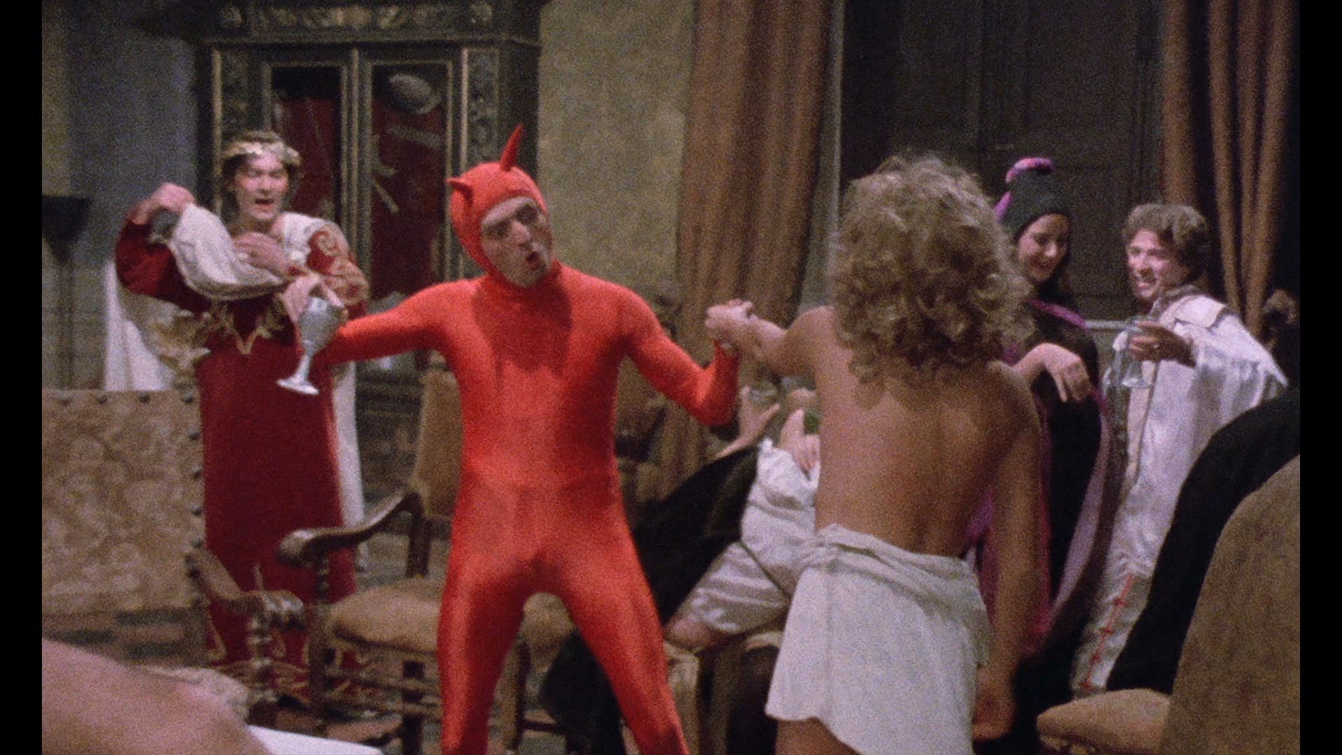 appearance) taking a unique and ultimately dramatic path to realization. That journey works better in the Italian cut of the film, which is included on the Severin disc as an extra with the option to watch it entirely in the original Italian with English subtitles or a composite with the English dub filling up as much of the running time as possible (and subs for the extra bits). The default play option is the X-rated English-dubbed version, which runs nearly ten minutes shorter. That doesn't quite tell the whole story though; as mentioned above, the English cut has some jarring explicit insert shots (mostly in the painter sex scene), but there are also alternate nude shots here from the original film itself, most notably a third act orgy that has copious female and male frontal nudity here but with all the actors covering themselves up with underwear or towels in the Italian version. So, basically you need to watch 'em both! Both versions are taken from what appear to be the sole surviving prints; quality is fine all things considered, with the Italian looking scratchier during its exclusive footage. It won't win any awards for demo quality or anything, but at least the color looks pretty good and it's fully letterboxed. For some reason this is encoded with the antiquated MPEG-2 codec (not the only one in this set), which is odd but not a big deal breaker in the case of this particular title. The DTS-HD MA 2.0 mono tracks for both are fine considering they're from exhibition prints. The only real extra here is "Sisters of Vice and Virtue: The Marquis De Sade and Nunsploitation" (12m49s), a video essay by Lindsay Hallam about the subgenre's wallowing in mixing pain, pleasure, and religion. There actually isn't anything