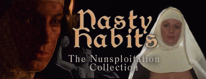 its native country than nunsploitation. The overwhelmingly Catholic mindset of Italy was essentially a cinematic powder keg ready to go off after the release of Ken Russell's The Devils, showing how much spectacle could be generated when viewers got a look at what happened to female libidos confined within convent walls. (On the other hand, nobody seemed all that interested in what monks got up to when the lights went out.) Thus we got a tidal wave of naughty nun epics that, perhaps not coincidentally, had about the same trajectory as Italy's Nazisploitation craze that also started to peter out around the end of the '70s. Though English-speaking demand for these films was fairly limited with only a handful getting theatrical releases, the naked nun fad did spread to a few other countries as well including Germany (most notably Jess Franco's Love Letters of a Portuguese Nun and The Demons) and Japan (including the masterpiece School of the Holy Beast and several Nikkatsu quickies). Along the way you even got the giallo-nunsploitation hybrid Killer Nun, and eventual it all petered out by the last significant release, 1987's The Devils of Monza (which got a pretty wide U.S. VHS release as Sacrilege). That brings us to Severin Films' 2021 four-film Blu-ray set Nasty Habits: The Nunsploitation Collection (also available as part of the brilliantly named The Nundle package) which presents some prime examples of the subgenre in all their habit-ripping glory.
