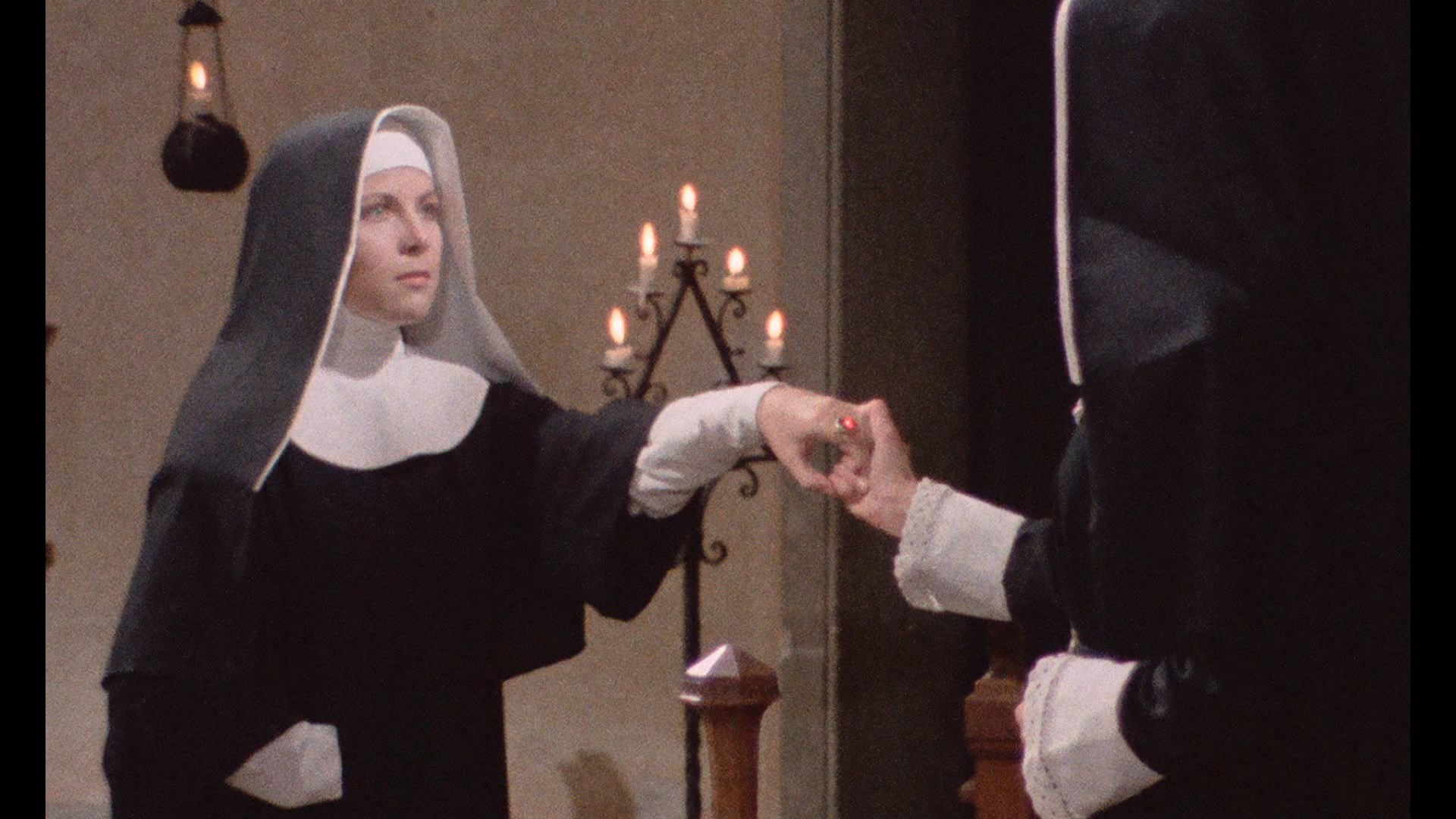 been out of practice by pretty much every label out there except, uh, VCI), so why it was employed here for such a grain-heavy film that could use all the compression TLC it can get is a mystery. The DTS-HD MA Italian 2.0 mono track sounds great and features optional yellow English subtitles. In "The Cross and the Sin" (26m32s), Fragasso provides another hugely entertaining interview about his work with Mattei (with this being their first venture together), the real origin of the story (and its erroneous writing credit for its producer), the vacant convent that was used as a location for this and The Other Hell, his memories of the actors (like the "mellow" Kerova," "nutter" Garofalo, and "neurotic" Franca Stoppi), the intention to cast Marc Porel instead of Cutini, and the demand for "racy nun movies" at the time. Then in "Sister Zora" (28m37s), Kerova recalls her time on the film including her positive rapport with both Mattei and Fragasso, her tendency to go for roles that are "a little masochistic," her philosophy on doing nude scenes, her lack of a Christian upbringing in the Czech Republic and conversion to Catholicism, and her pride in what she accomplished in Italy.IMAGES IN A CONVENT (Severin Blu-ray)