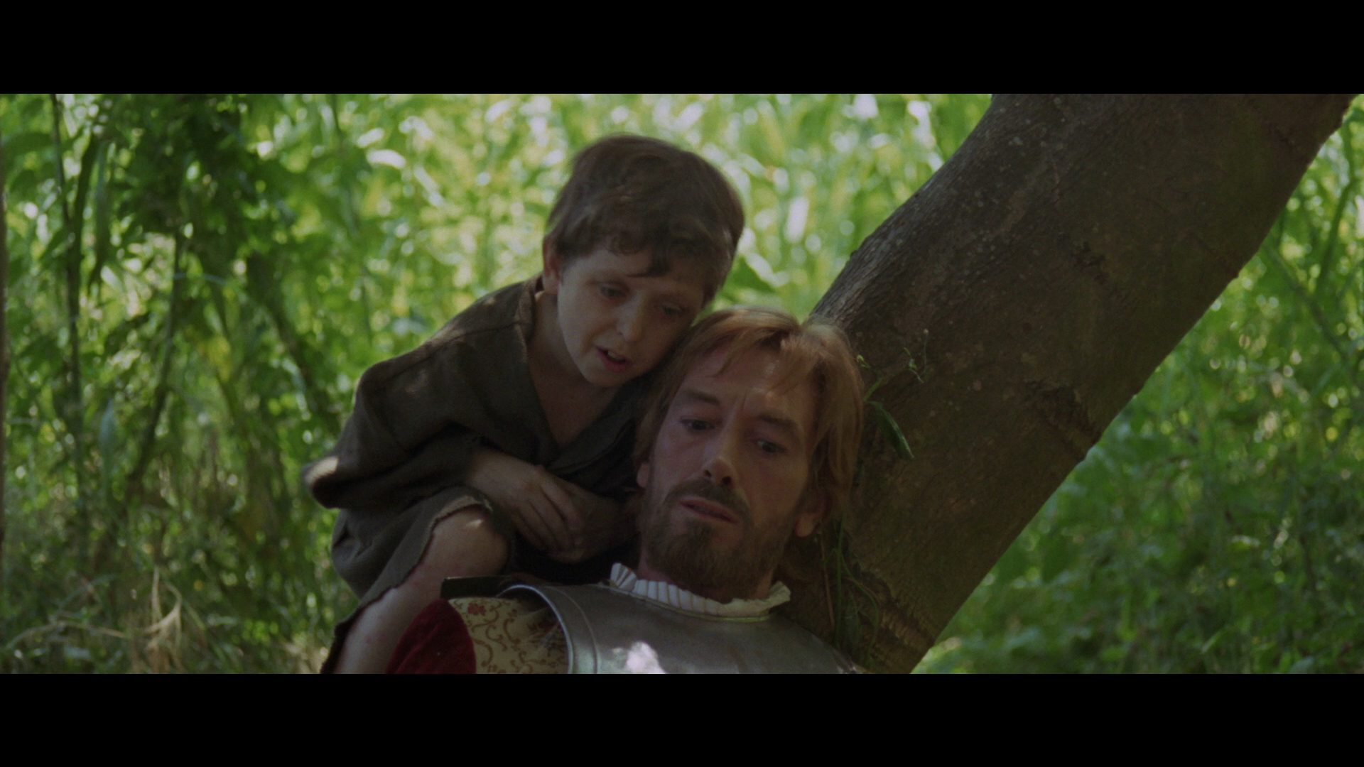 anthology Cake of Blood (Pastel de sangre). Here you get a quartet of stories spanning different time periods, all beautifully shot in scope by separate directors for each. The odd title presumably implies that each story is a different "slice" from this macabre confection, starting with the sparse and haunting "Tarot" starring Julián Ugarte (the creepy cult leader from All the Colors of the Dark). Here he plays a medieval knight on horseback embarking on a death-haunted journey that leads him through a forest and some oddball characters, eventually reaching a beautiful woman who represents his dark fate. The artiest and most abstract of the tales, this one looks great and has that eerie doomed romanticism of films like Leonor. This would be the only feature credit for director José María Vallés, who otherwise worked in arty short films. Next up is the most surprising story of the bunch, "Victor Frankenstein," a high unorthodox take on the Mary Shelley classic by Emilio Martínez-Lázaro that also serves as an early teaming of two Pedro Almodóvar staples, Marisa Paredes (All About My Mother) and Eusebio Poncela (Law of Desire), the latter in his film debut just before Cannibal Man, The House Without Frontiers, and The Killer Is One of Thirteen. Here the story gets compressed and inverted as Victor Frankenstein (Ristol) engineers a reanimated creature (Poncela)