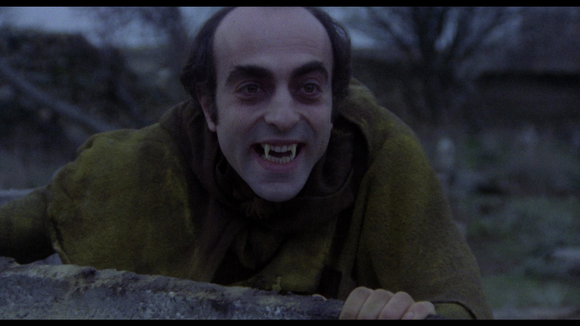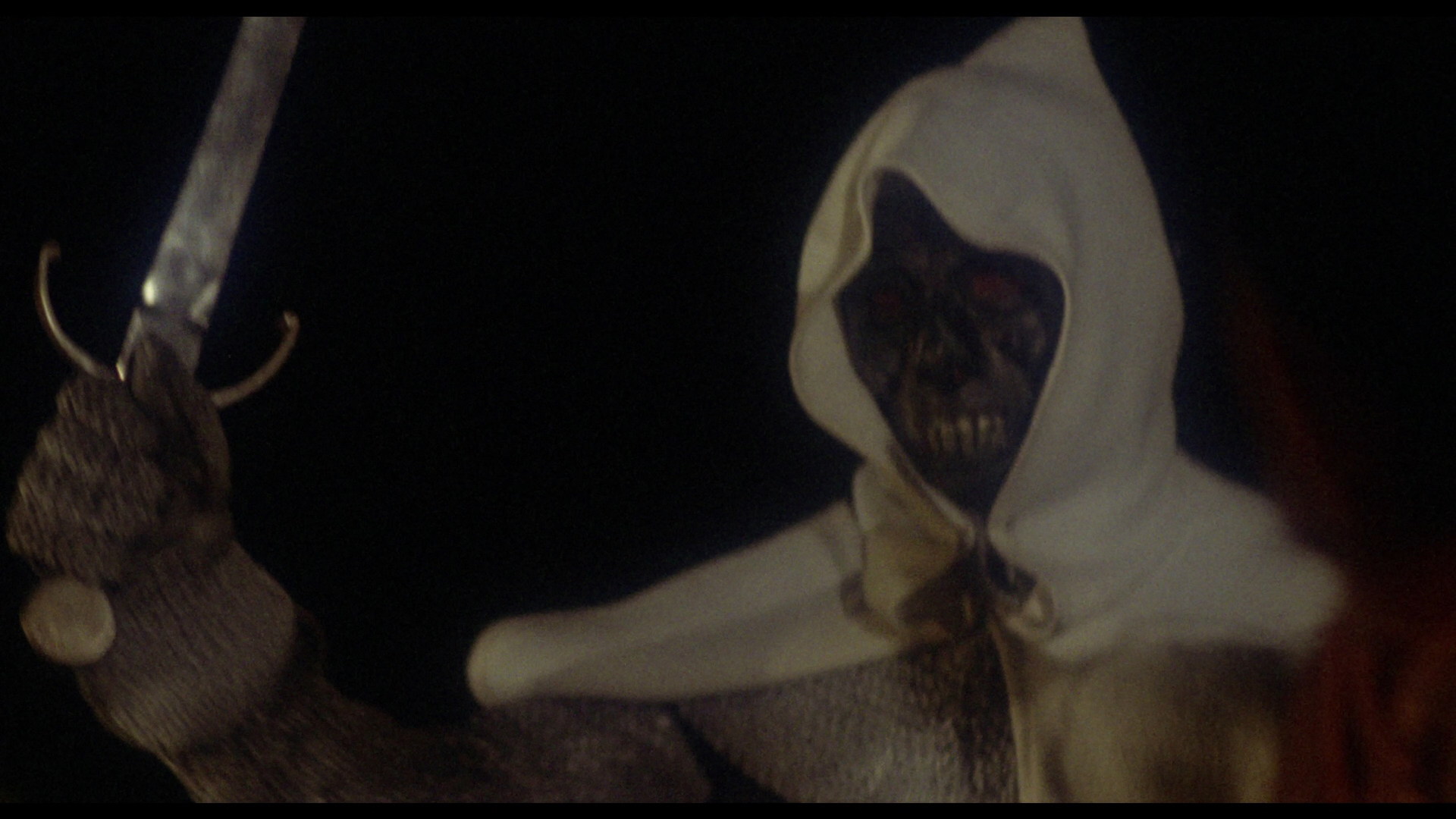 At last you can clearly see what's going on in those dark graveyard scenes, which is especially important during the finale. The DTS-HD MA 2.0 mono English and Spanish tracks both sound great; it's a draw which one is preferable as it was shot in a combination of the two languages and dubbed in post-production either way. The Spanish one feels more elegant though, and optional English (SDH and translated) subtitles are provided. Either way you can enjoy one of the film's strongest assets, the eccentric and clever score by Alfonso Santisteban (which incredibly ended up getting a CD release paired with The Killer of Dolls). A new commentary by The Nasty Pasty Podcast's Andy Marshall-Roberts does a skillful job of covering the pertinent facts of the actors and crew while also pointing out the relevant literary nods to authors like Edgar Allan Poe along the way. In "Something You've Never Seen" (8m6s), Ángel Sala, The Sitges Film Festival's Head Of Programming, chats about the film's divisive nature, the attempts to pass this off as an Anglo production a la Hammer or Amicus, Madrid's career, and the state of Spanish horror at the time. Then in "The First Horror Film Festival in the World" (11m2s), Maria Pilar Rafáles, daughter Of Sitges Film Festival Founder Antonio Rafáles, recalls the creation of the vital genre celebration in 1968 and the launch of its competitive incarnation in 1971 with participation from a wide range of countries and journalists. Finally you get two trailers, as The Butcher of Binbrook (with the narrator still calling it Necrophagus) and Graveyard of Horror.