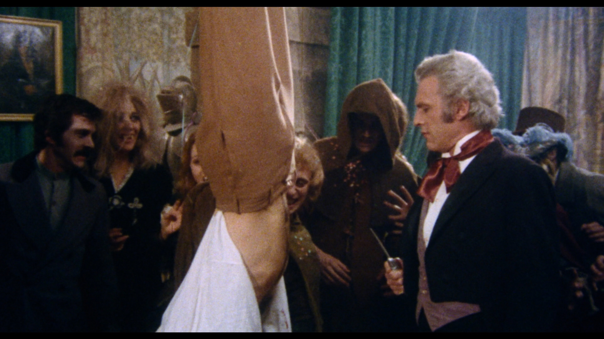 Finally on disc four we get to Night of the Walking Dead, the ridiculous U.S. title imposed on the fascinating El extraño amor de los vampiros (or Strange Love of the Vampires). Not to be confused with Castle of the Walking Dead (a.k.a. Torture Chamber of Dr. Sadism), this is most definitely a vampire film as opposed to a zombie one and also stands as a fine entry in the bloodsucker cycle by director León Klimovsky (The Dracula Saga, The Vampires Night Orgy, The Werewolf Versus the Vampire Woman). Cohen returns here and gets starring honors as the ailing Catherine, who's feeling especially despondent after losing her sister, being diagnosed with a terminal form of tuberculosis, catching her beloved Jean (Jordan) trysting in the barn with another woman, and being left to her own devices so her parents can go off on vacation. All of this makes her a prime attraction for the mysterious Count Rudolph de Winberg (Ballesteros), who has vampirized her sister and is now keen on putting the bite on Catherine in her bedroom. Intrigued, our protagonist decides to accept an invitation to the Count's nearby castle where he throws swanky bloodletting masquerade parties and professes his love for Catherine, with their contrasting views on mortality making them a highly unusual couple at risk from the monster-hunting locals.
