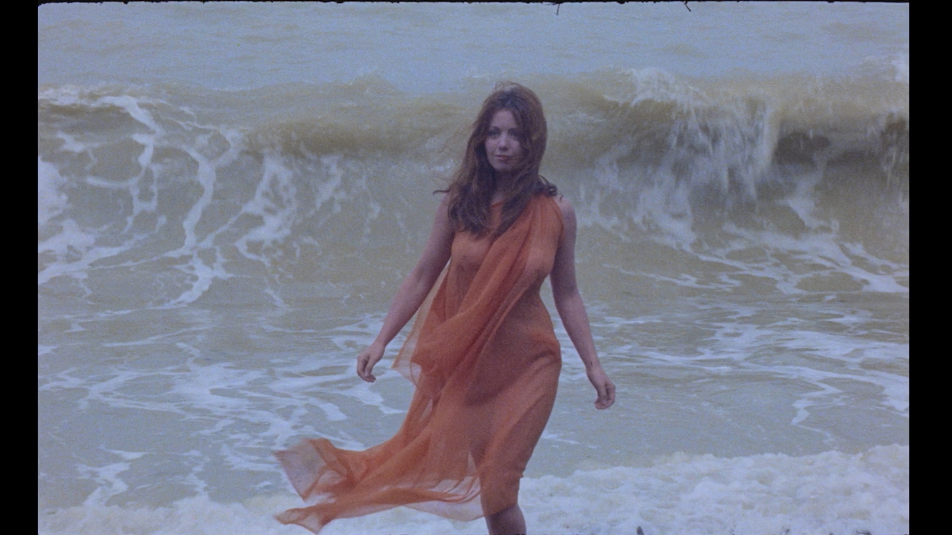 A new audio commentary by the always engaging Kevin Lyons and Jonathan Rigby takes you through the peculiar landscape of Rollin's cinema and touches on his manipulation of vampire, pulp novel, and comic art tropes, the transition in Euro vampire cinema taking place that would reach fruition in the more sexually liberated 1970s, comparisons to Rollin's prior feature, the reception by the French press, and the ideas established here that would blossom in his later work. Video extras here include a slight polish of the '98 Rollin intro (5m26s), an updated revision of the "Journey" featurette by Rollin assistant Daniel Gouyette as "Le Passage" (8m54s) with Natalie Perrey, Jean-Noël Delamarre, and Jean-Pierre Bouyxou, and a streamlining of the "Memories" featurette here as "Fragment d'un dialogue" (19m23s) collecting Rollin interview highlights with Gouyette from a five-year period up to 2003. New here are "An Anarchist Vampire in Paris" (5m26s), with archivist Lucas Balbo explaining how his father's friendship with Rollin and their association with the Fédération Anarchiste provided an unusual gateway to these films, and "Countercultural Gothic" (10m2s) with the always insightful Virginie Sélavy parsing out the film's place within the uniquely French strain of the hippie movement and its aesthetic ties to what was going on in pop culture. Also included are the French and English trailers, plus hefty galleries for promotional and publicity material (104 images), behind the scenes (59 images), and additional photography (46 images). The limited edition package also comes with an 80-page book with a new essay by David Jenkins, an archival Rollin intro and interview highlights from 1973 and 1996, and a dive into Lettrist artist, filmmaker, and Rollin collaborator Maurice Lemaître.
