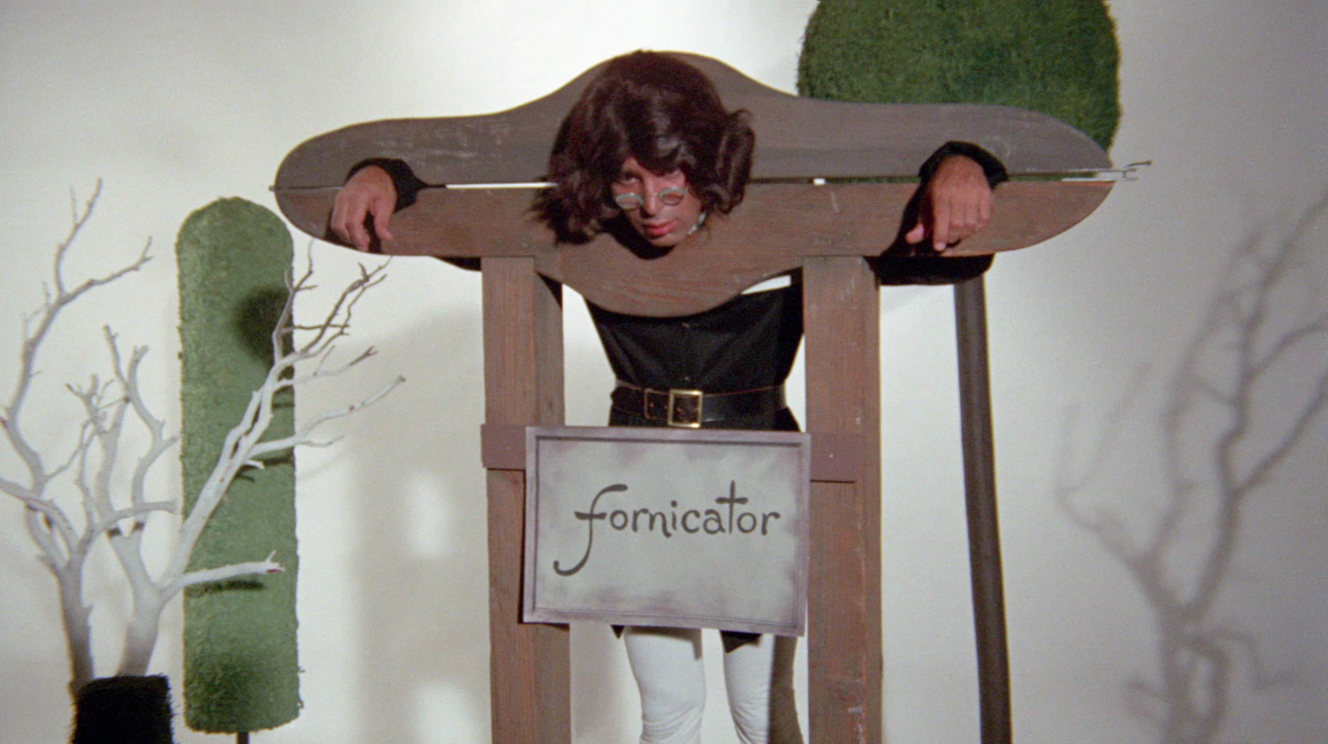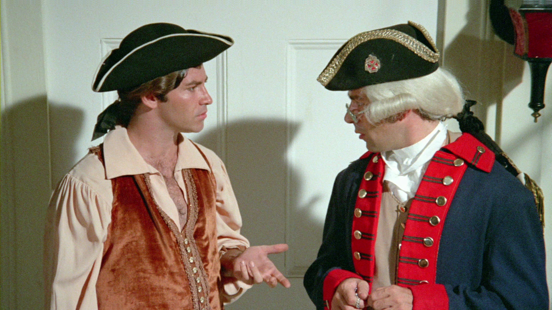 form or fashion. What we have instead is a bunch of truly strange sex comedy vignettes barely held together by the narrative device of Homer (Tata), an outrageous Jewish stereotype, and Blackie (uncredited), an even more outrageous black stereotype, which find themselves granted one wish in heaven. Blackie wishes for a million dollars, while Homer gets a magical pocket watch. The story then fragments into pieces as we jump to another Homer many generations down (same actor) at a professor's research area, nagged by a scolding mother, while Blackie watches the whole thing on a monitor made from wired-up watermelon. (Yes, really.) Apparently the professor has mastered time and the universe, and now he can send Homer hurtling around through sexy highlights of human history as long as he plays the role of the period in which he finds himself. That involves the same pocket watch, which first plops Homer in the American Revolution as George Washington embroiled in the sexual shenanigans of Paul Revere (Kirkland) and Betsy Ross (The Toy Box's Arnold). Then it's off to France for some sapphic interaction between Marie Antoinette (porn vet