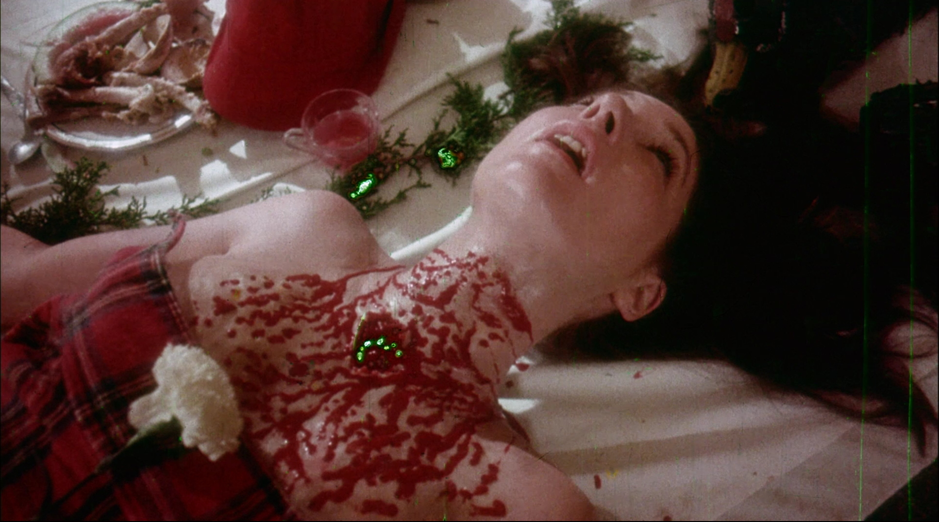 Most people stumbled on this oddity in their local video story, probably during the VHS era when Continental Video slipped it out in one of those oversized boxes under its more familiar title, Class Reunion Massacre (added to the print through the magic of a cheap video title card). That transfer was obviously no great shakes, and because that version neglected to carry over the copyright card, a lot of companies naturally assumed in must be public domain and stuck their cruddy VHS rips onto some budget bin, gray market DVD releases (including a terrible "East West Productions" double feature with Andy Milligan's Carnage). Decent film elements on this film have eluded repertory programmers for decades, so the fact that anything at all was found for the DVD is something of a minor miracle. The transfer used byCode Red for its 2010 DVD release obviously isn't their finest hour, admitted in an opening disclaimer card, but it's still a whole lot better than anything we've had before. The anamorphic