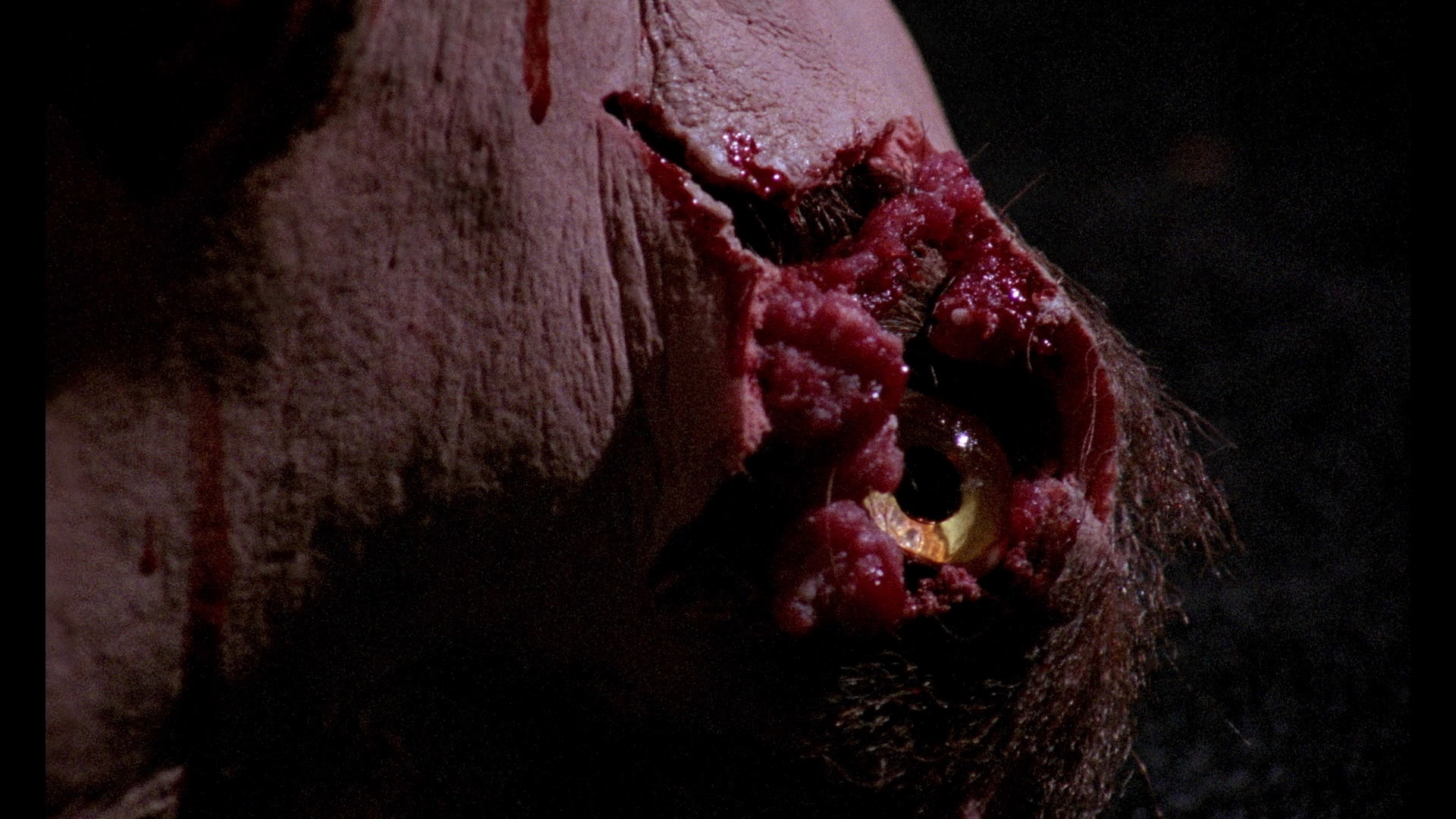 2020, new label Cauldron brought the film back to the U.S. for the first time in decades as one of its inaugural Blu-ray releases along with Abrakadabra complete with slick slip sleeve packaging and a new 2K scan from the original camera negative. The image quality does indeed differ significantly, revealing that some extensive noise reduction was applied to the earlier release; quite a bit of additional detail is visible here with textures on clothing, hair, and interior decor looking far more convincing with less of a waxy appearance. It's also brighter and features some framing variations throughout, mostly shifting down and to the right slightly for most of the running time. (Compositionally it looks workable either way; frame grabs in the body of this review are from the Cauldron with comparisons below.) Color timing also varies, with a less earthy look and a handful of exterior scenes (such as the fourth shot at the bottom) looking cooler and more overcast. In motion it looks great and makes for a significant upgrade, not least of all for finally running at the correct film speed. The LPCM English mono track also sounds great and sports English SDH subtitles. A new audio commentary by Kat Ellinger and Sam Deighan centers almost completely on Martino as they chat about his flexibility with different genres, his tendency to veer away from established formulas, the impact of Claudio Cassinelli's death on Hands of Steel, the depiction of Asian characters at the time, the connections to other directors throughout Martino's career, the director's lack of a consistent visual signature, and the relentless insanity of the entire story. The interview featurette with Martino and Geleng is also included here, but you also get a new location "Then and Now" featurette (2m52s) showing various locations around the city in their 1989 and 2019 states. An episode of The Projection Booth podcast (65m30s) is quite amusing as the gang attempst to grapple with the sheer craziness of the fim and form an appreciation society for what should be a major cult fim in the making. Finally the disc closes out with an image gallery (1m4s) featuring a wealth of international artwork from the film's theatrical and home video releases along with a smattering of promotional stills.