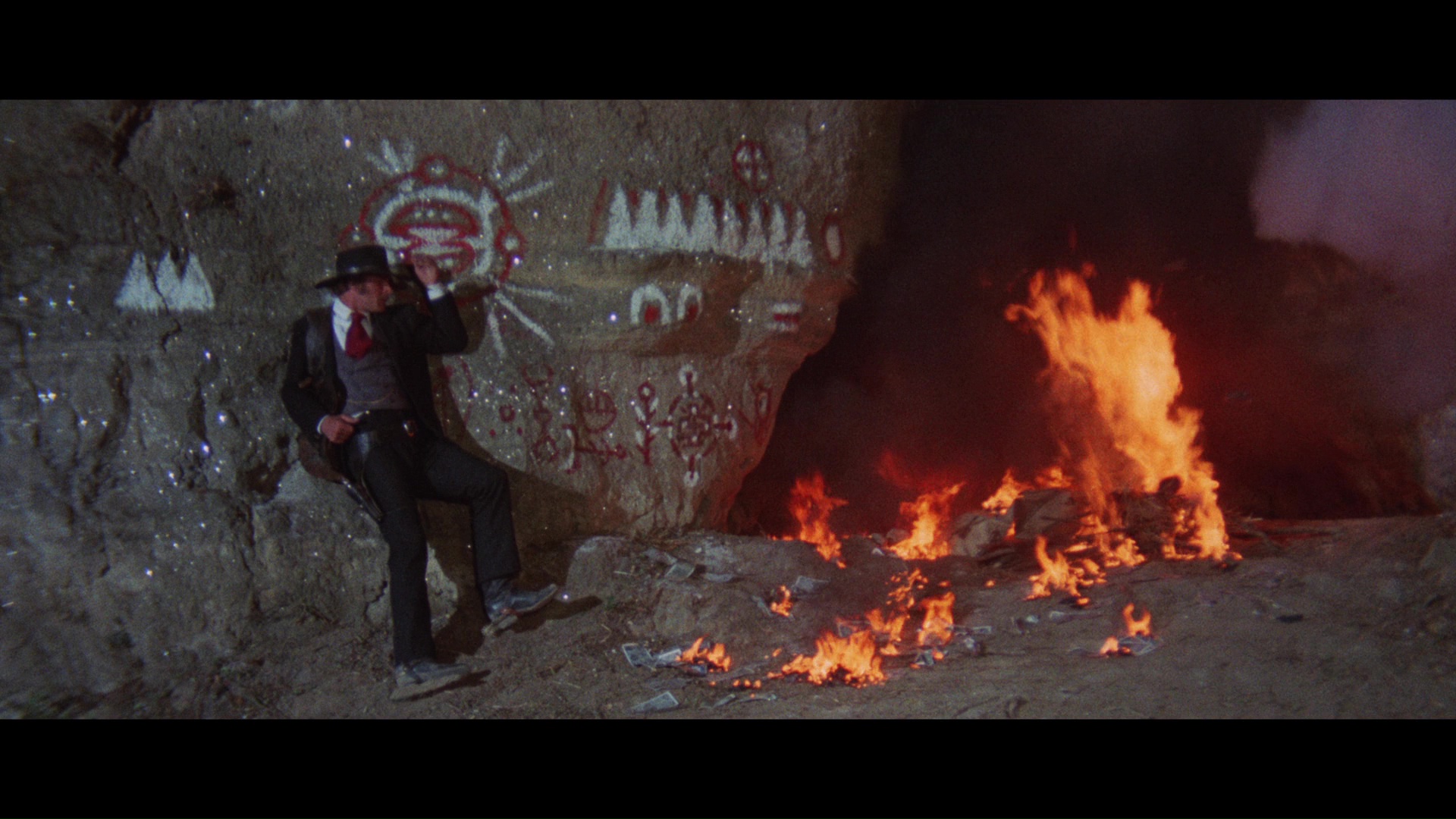 up considerably) features western expert, novelist and screenwriter C. Courtney Joyner and screenwriter/True West editor Henry Parke chatting about all things Sartana, including much joy over the stylish magic trick opening credits and notes on everything from Sartana's Dracula-style cape to the tweaking of western narrative conventions throughout. In "From the Life of a Stuntman" ( ), actor and stunt man Sal Borgese (24m18s) covers his colorful career in westerns, mafia and sword and sandal films, including his early stint on Django, the more dangerous conditions for stunt performers at the time, and the last-minute nature of some small roles that he doesn't even remember doing now. Very prolific screenwriter Ernesto Gastaldi turns up for another of his detailed, enjoyable interviews with "Violent Tales for Kids" (19m10s) about his tenure in the world of spaghetti westerns from Arizona Colt onward including both this film and Light the Fuse. Another Siegel archive gallery is included with 31 images.