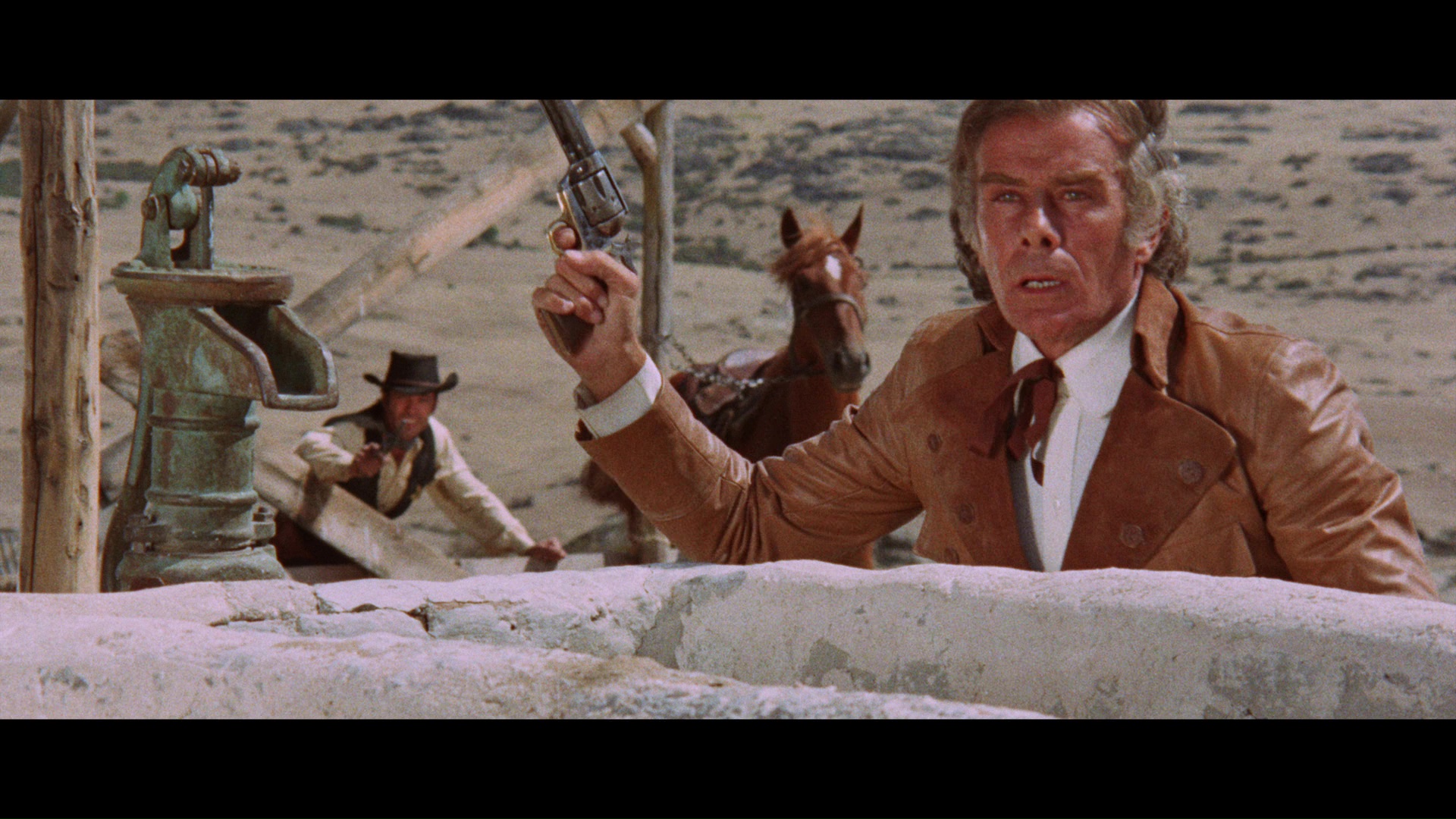 character, and plenty more. Next is a new interview with Blanc, "Lady Colt" (29m21s), with the much-loved icon of horror and erotic cinema (who's shot with some rather unflattering lighting here) noting her first time doing a western with Anthony Steffen (and learning how to ride a horse), the distracting nature of her cleavage in this film since she was pregnant at the time, the lax treatment westerns received from censors (no kidding!), and the treatment of male vs. female stars at the time. Finally, "A Very God Job" (15m16s) features actor and agent Tony Askin chatting about his career back and forth in front of and behind the camera as well as his working relationship with Carnimeo. A 23-image gallery is also included. The deluxe box packaging offers reversible sleeve options including new artwork by Matthew Griffin, plus an insert booklet with essays by Roberto Curti and a spaghetti western timeline by Howard Hughes.
