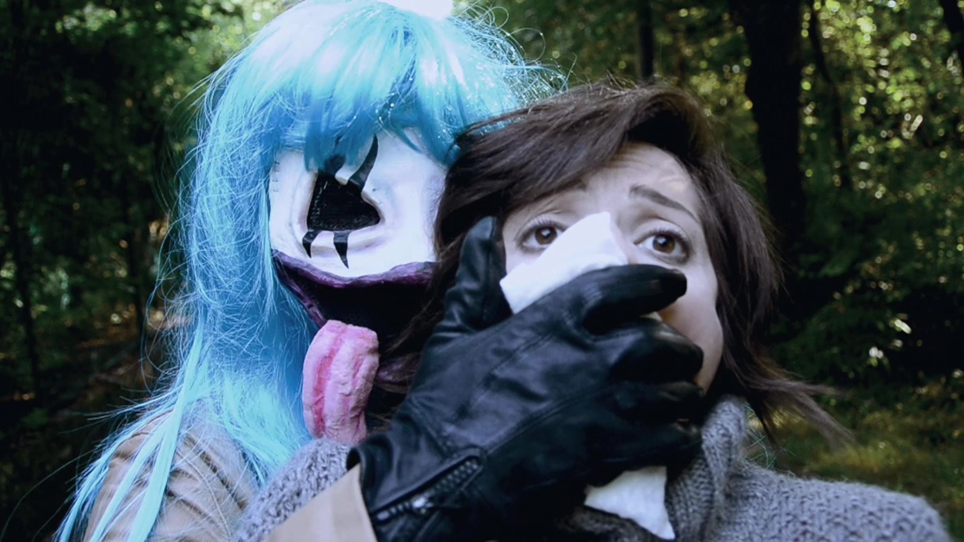 A much odder Troma entry getting the Blu-ray and DVD treatment is an Italian import called Extreme Jukebox, a 2013 wannabe cult film from Alberto Bogo and Andrea Lionetti. Sort of an attempt to do a modern rock horror midnight movie, the story takes place in a music-crazed town called Nova Springs where a missing '80s pop legend named David Crystal holds sway over our hero, singer Jessie Cake. Accompanied by his girlfriend, Jessie tracks down the singer's final whereabouts and uncovers his last recording, a supernatural spell that unleashes a demonic, murderous version of Crystal to wipe out the local populace. That's mainly an excuse for the film to veer back and forth between strange comedy scenes, random horror homages, and colorful rock numbers, which means you're best off watching this with friends and not giving it your full attention. The vibrant color schemes look great on the Blu-ray edition, though the use of burned-in English subtitles for the Italian dialogue (Dolby Digital stereo as usual) is a bit of a bummer. Extras include the usual Lloyd Kaufman intro (calling this the most outrageous Italian film since Profondo Rosso, which is highly debatable), an "Inside Extreme Jukebox" featurette with the very enthusiastic directors taking a 53-minute tour through the making of the film, a photo gallery, the trailer, and a Rainbow Projects charity promo.
